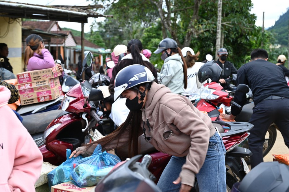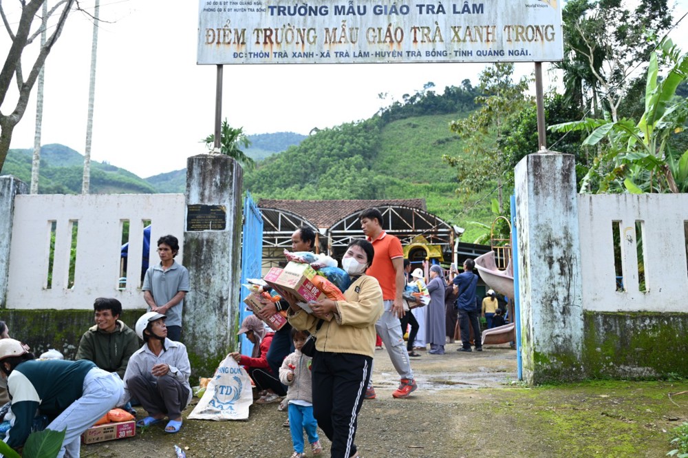 Trong chương trình cứu trợ, đoàn đã trao tặng 300 phần quà hỗ trợ sinh kế cho các hộ gia đình khó khăn. Mỗi phần quà trị giá 400 nghìn đồng gồm nhu yếu phẩm và tiền mặt, nhằm giúp bà con sớm ổn định cuộc sống sau thiên tai. Cụ thể, đoàn đã trao 100 phần tại thôn Đam, 100 phần tại thôn Nước Nia (xã Tây Trà Bồng) và 100 phần tại thôn Trà Lạc (xã Thanh Bồng).