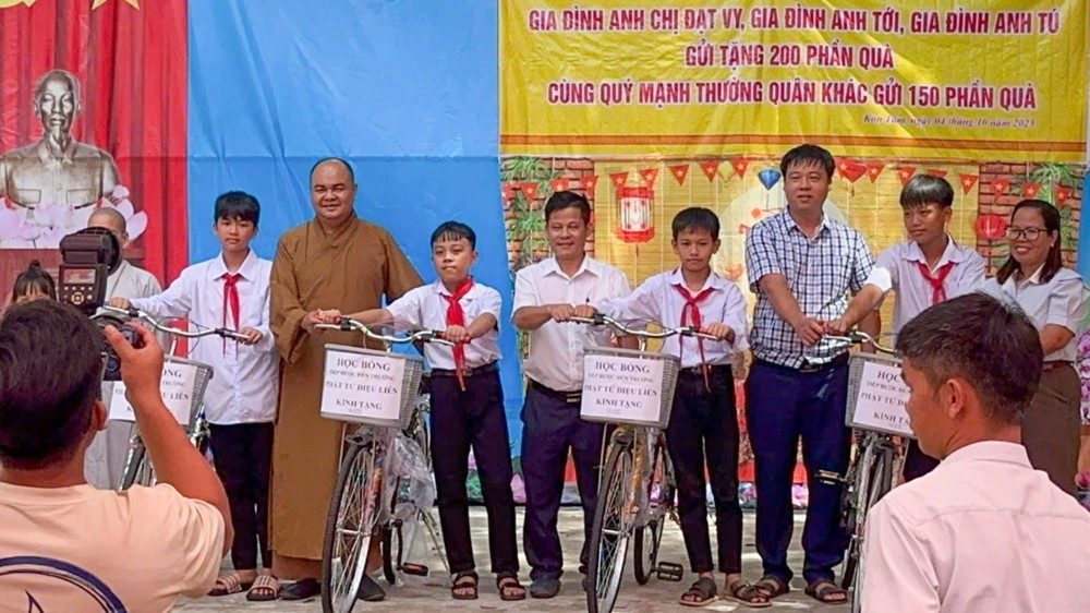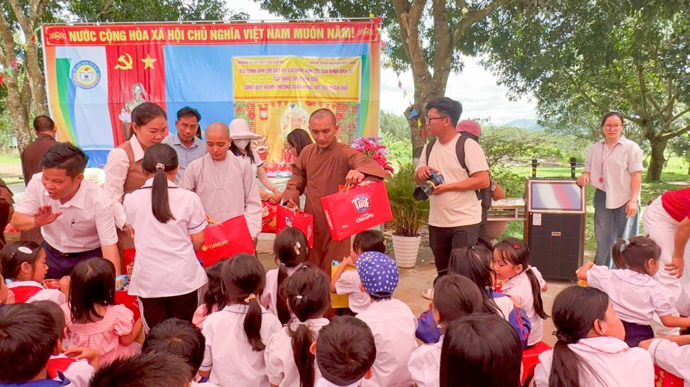 Trong dịp này, Thượng toạ đã trao tặng 316 phần quà Trung thu gồm bánh kẹo, lồng đèn cùng nhiều phần quà ý nghĩa, nhằm mang đến cho các em một mùa Tết Trung thu trọn vẹn. Ngoài ra, Thượng toạ còn trao tặng 05 chiếc xe đạp và 05 phần quà đặc biệt dành cho những em học sinh có hoàn cảnh khó khăn, góp phần động viên tinh thần hiếu học và khích lệ các em vươn lên trong học tập cũng như trong cuộc sống.
