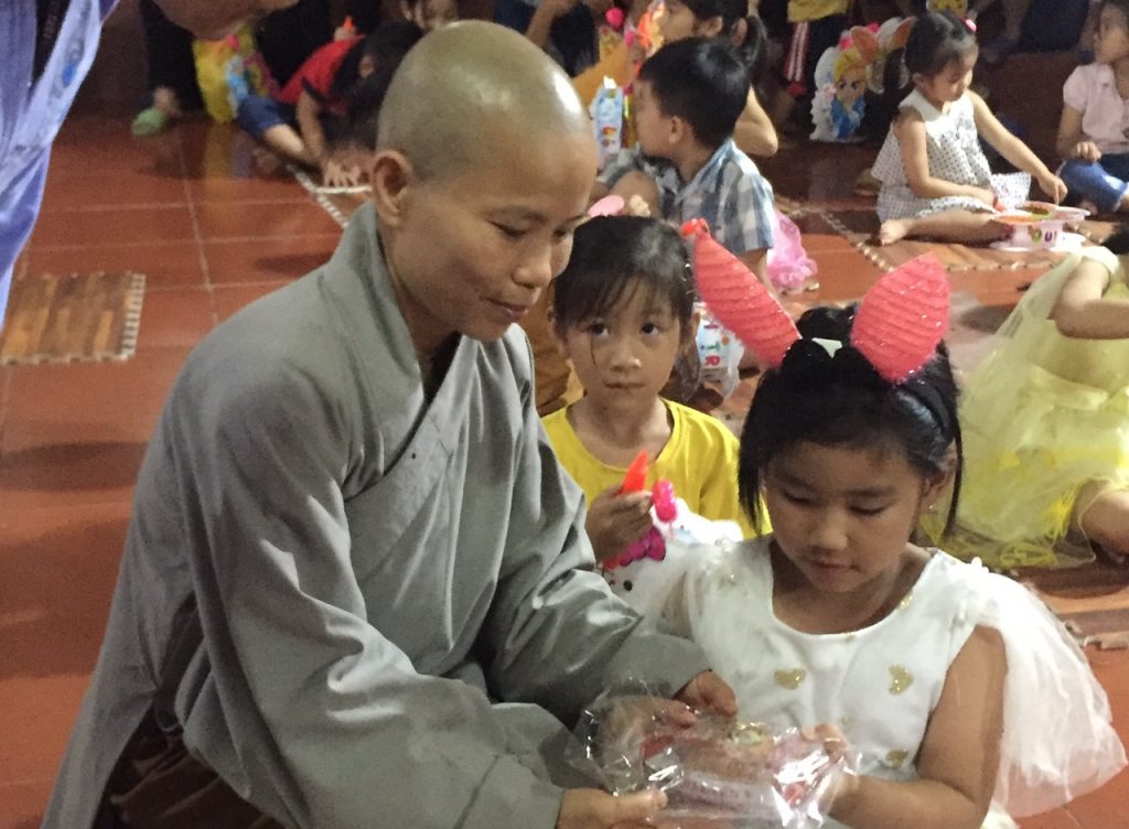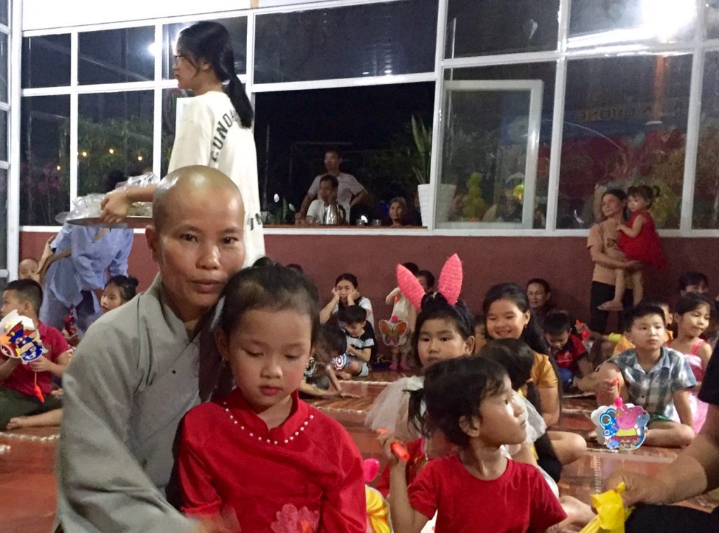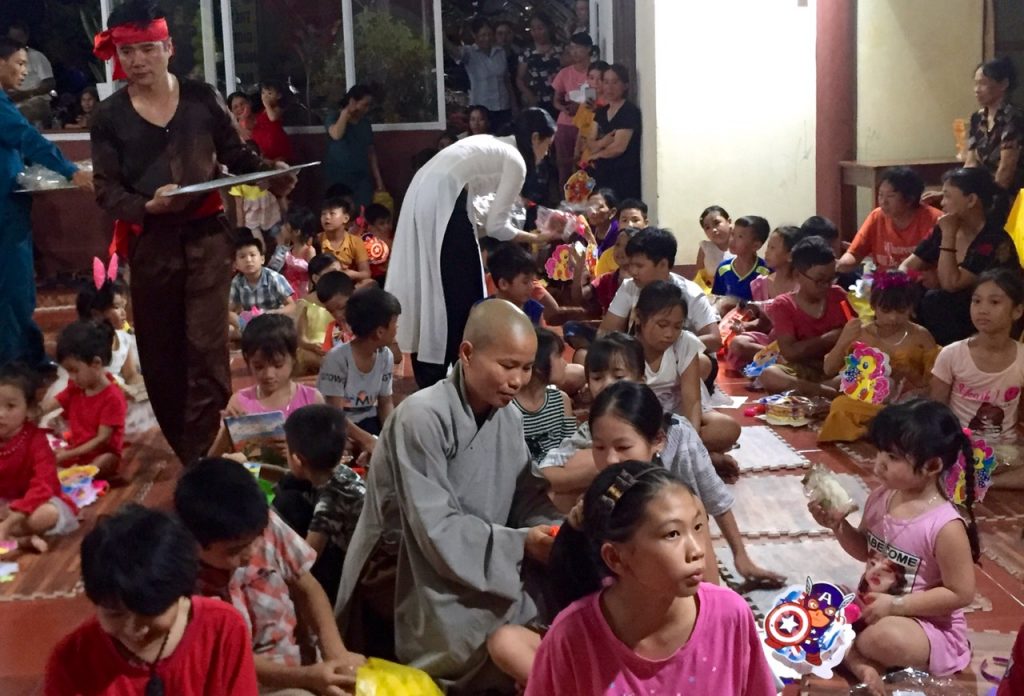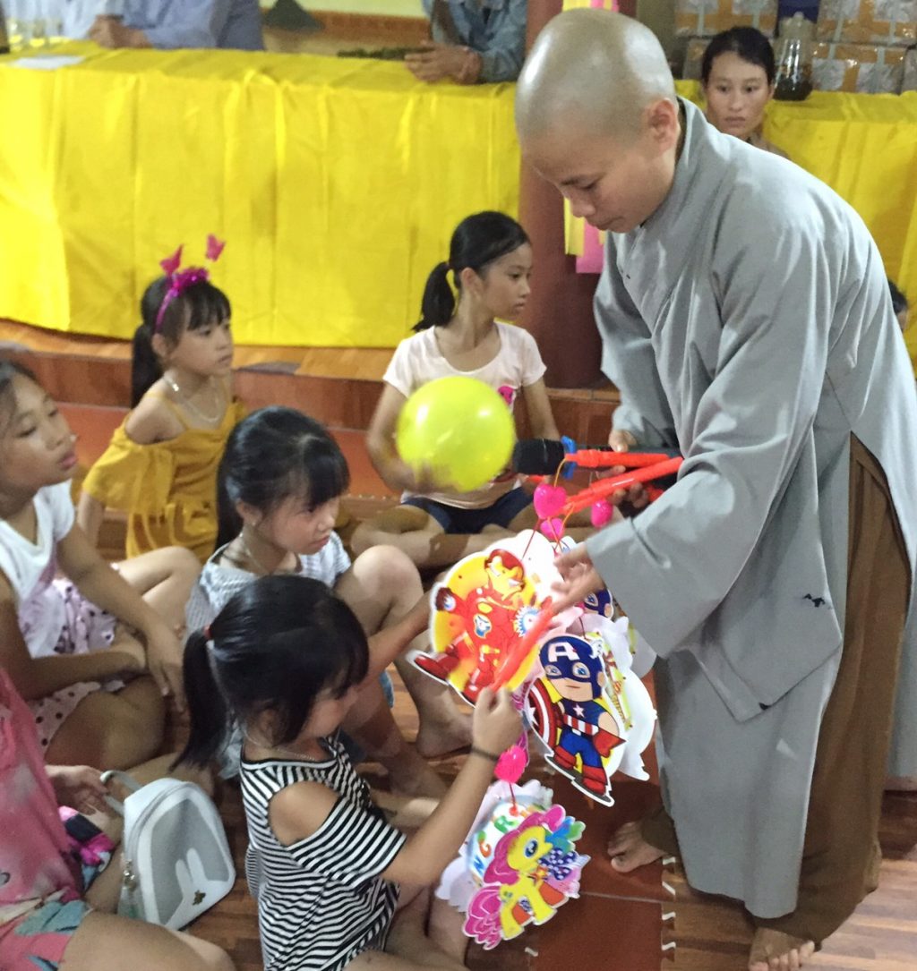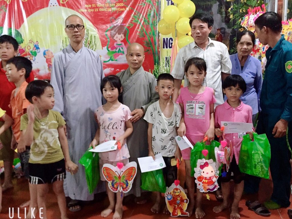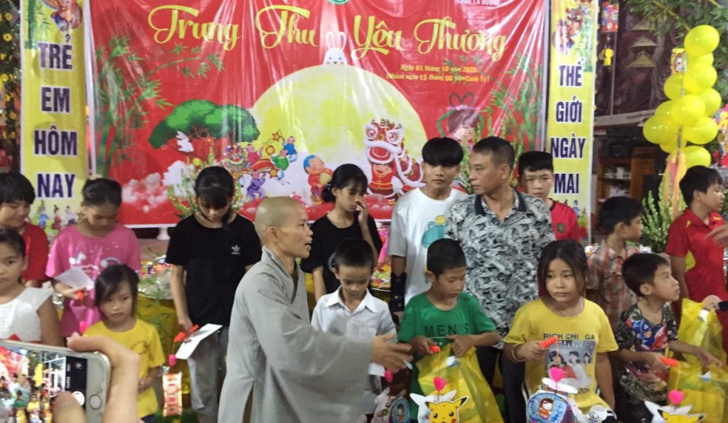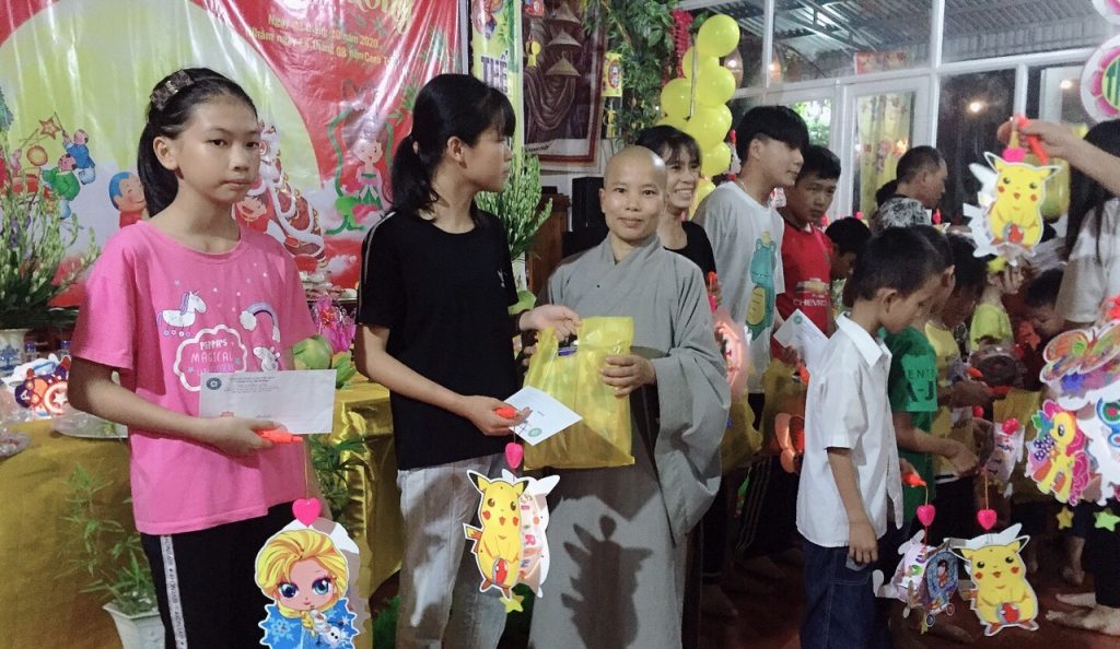 Trung thu năm nay, ngoài việc chăm lo cho các em thiếu nhi ở địa phương, Sư cô Trụ trì và các phật tử ở chùa còn phát 140 phần quà cho các em nhỏ tại trại Phong Chí Linh, Sao Đỏ, Hải Dương.