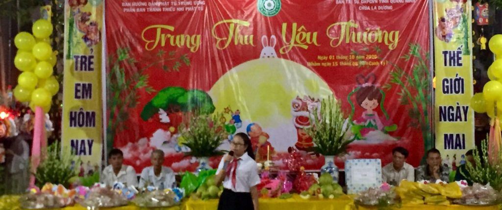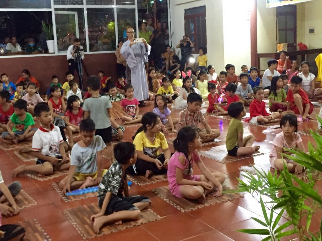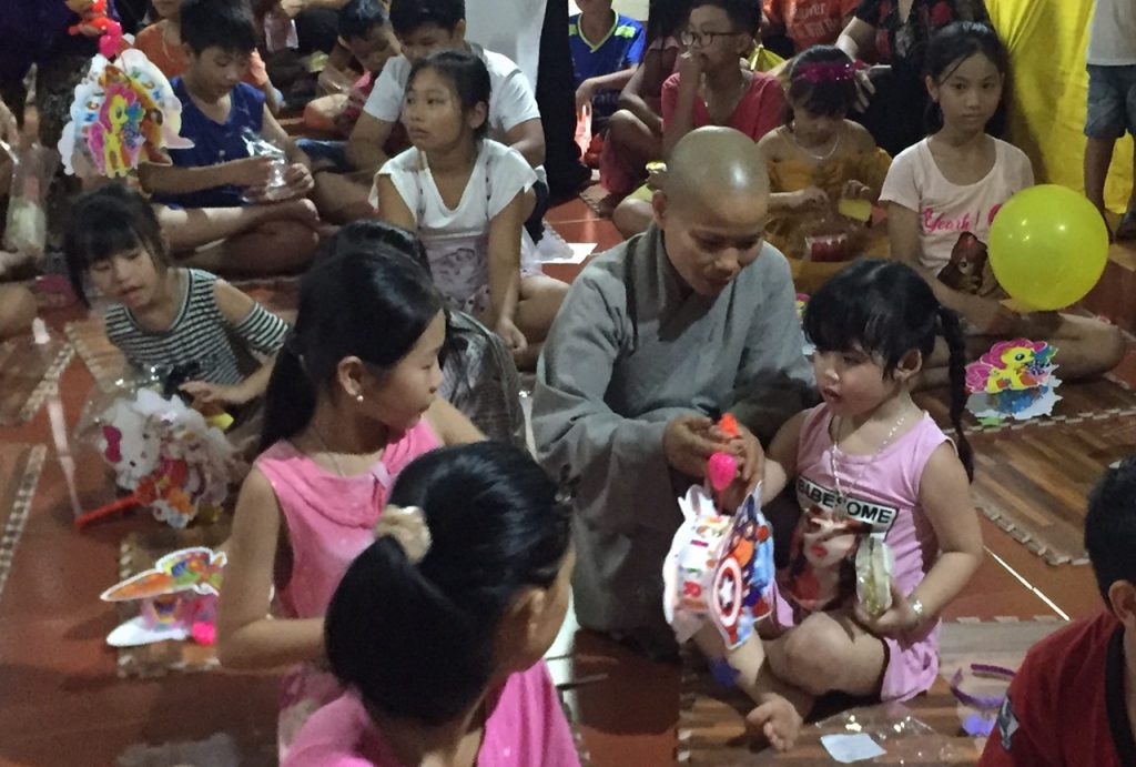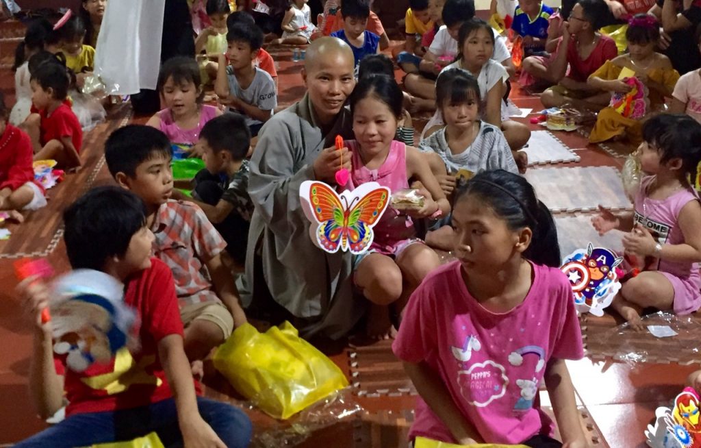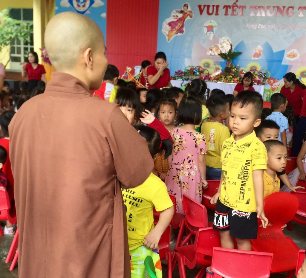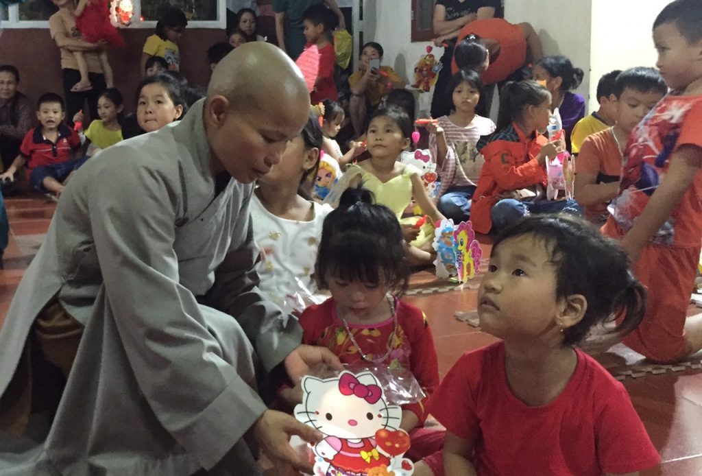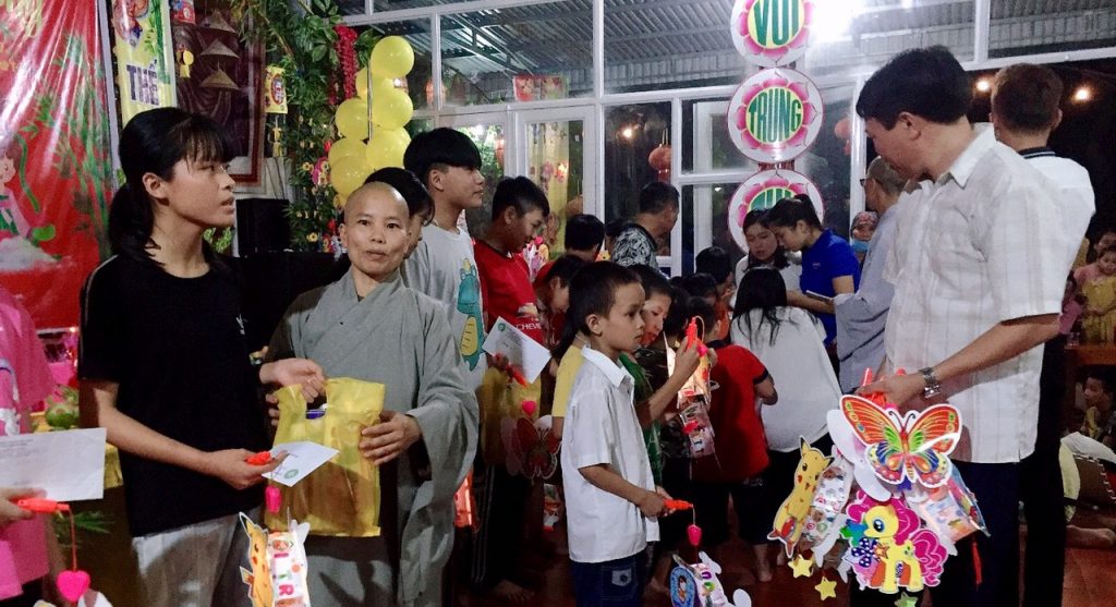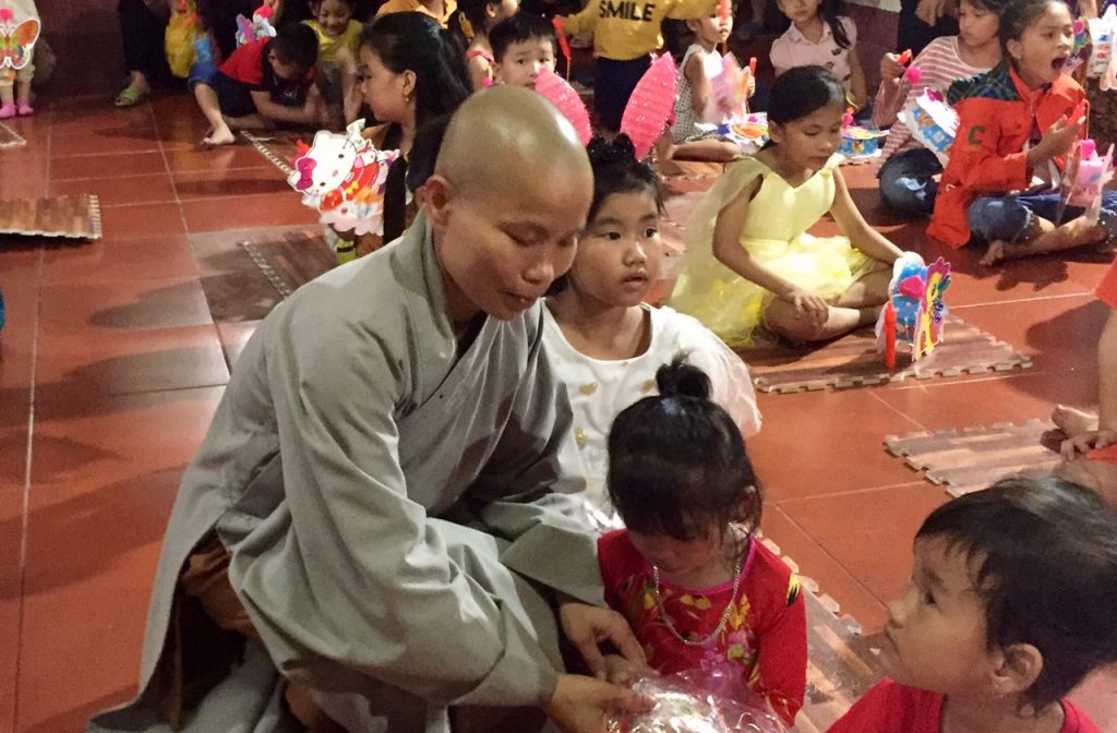Trung thu năm nay, ngoài việc chăm lo cho các em thiếu nhi ở địa phương, Sư cô Trụ trì và các phật tử ở chùa còn phát 140 phần quà cho các em nhỏ tại trại Phong Chí Linh, Sao Đỏ, Hải Dương.