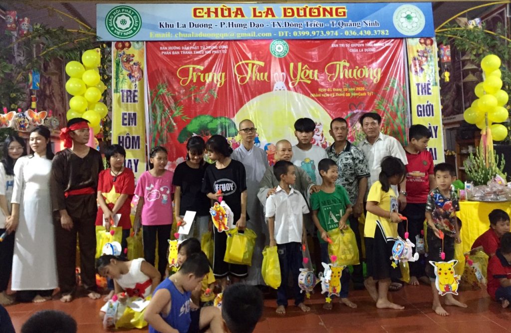 Tết trung thu năm 2020 chùa La Dương (phường Trần Hưng Đạo, TX Đông Triều, tỉnh Quảng Ninh) cùng các phật tử đã tổ chức chương trình tặng quà yêu thương tới các em học sinh có hoàn cảnh khó khăn của 3 trường: Trường mầm non, cấp 1, cấp 2 và các em có hoàn cảnh khó khăn tại La Dương. Trong chương trình này, Sư cô Thích Nữ Bảo Hoà - Trụ trì Chùa La Dương đã phát 200 phần quà trung thu cho các em.