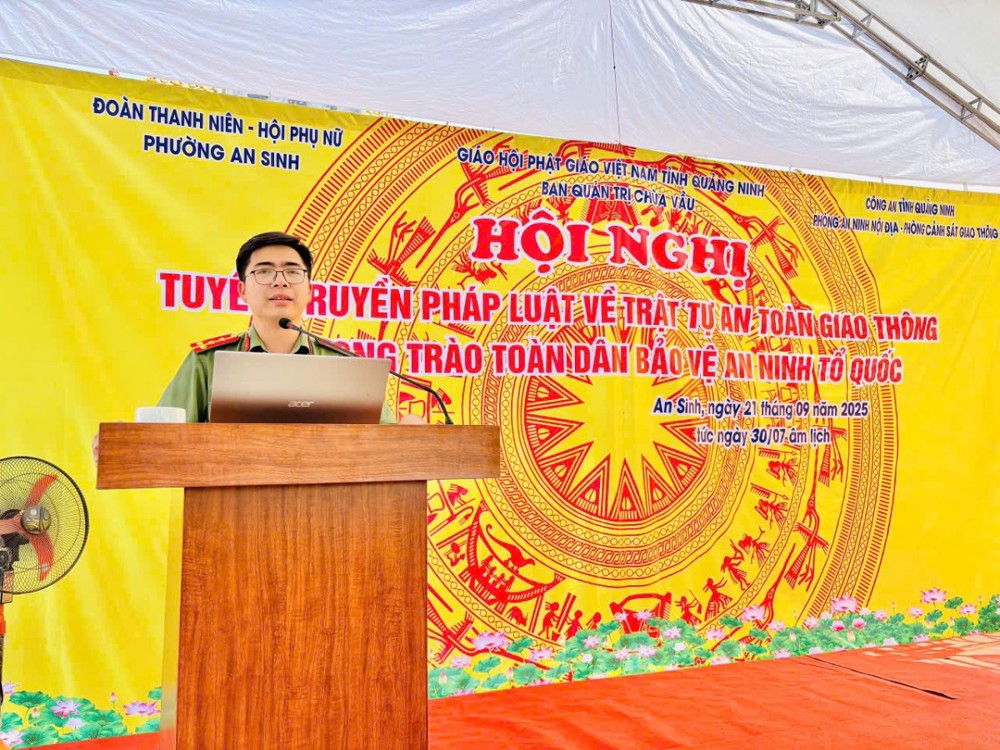 PSO - Ngày 21/9/2025, tại chùa Vầu, phường An Sinh, tỉnh Quảng Ninh, Ban Quản trị chùa đã phối hợp cùng Ban Trị sự GHPGVN tỉnh Quảng Ninh, Công an tỉnh và Đoàn Thanh niên phường An Sinh tổ chức Hội nghị tuyên truyền pháp luật về trật tự an toàn giao thông và phong trào Toàn dân bảo vệ an ninh Tổ quốc lần thứ II, giai đoạn 2023 – 2026.