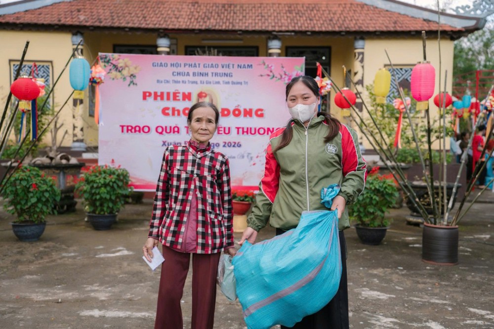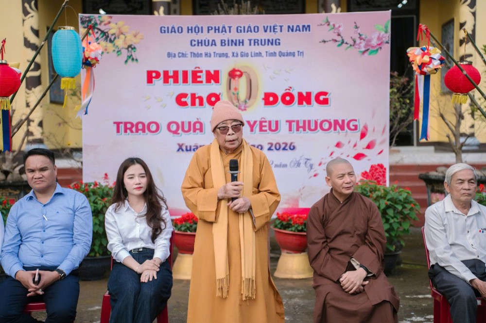PSO - Ngày 07/02/2026 (nhằm ngày 20 tháng Chạp năm Ất Tỵ), Đại đức Thích Nguyên Chính – Ủy viên Thường trực Ban Trị sự GHPGVN tỉnh Quảng Trị, Trụ trì chùa Bình Trung (xã Gio Linh, tỉnh Quảng Trị), đã tổ chức chương trình “Phiên chợ 0 đồng – Tết yêu thương, Xuân từ bi Bính Ngọ 2026” trao quà đến bà con có hoàn cảnh khó khăn trên địa bàn.