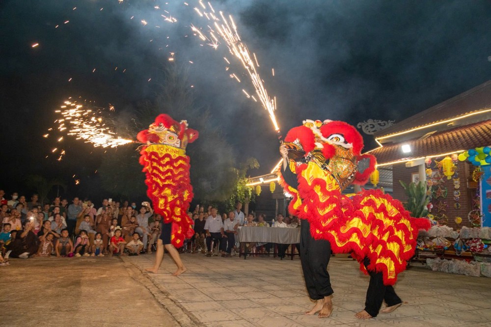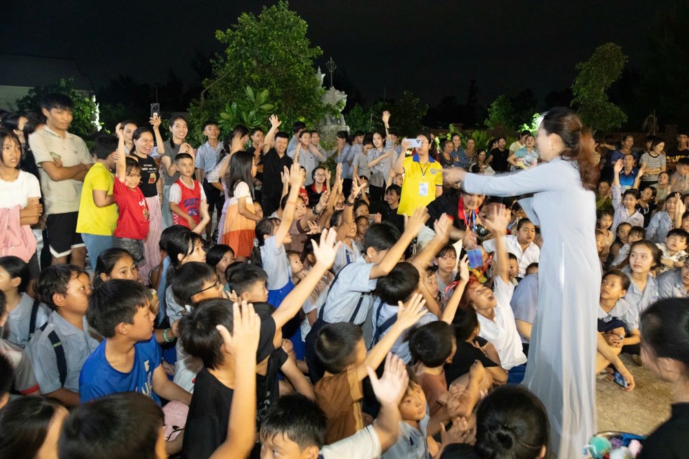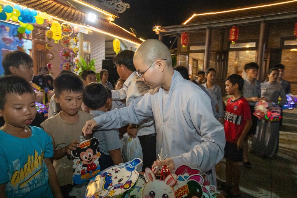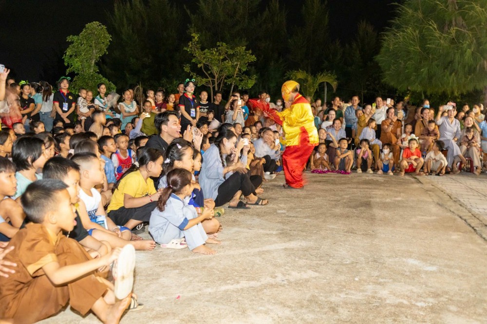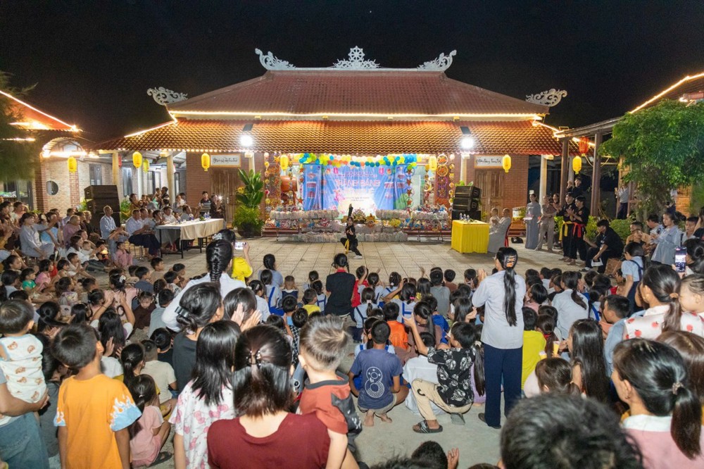 Một điểm nhấn đặc sắc của đêm hội là phần trình diễn “Tinh hoa Võ Việt” từ Câu lạc bộ Võ Kinh Vạn An. Các tiết mục võ thuật, vốn xuất phát từ cung đình triều Nguyễn, không chỉ thu hút sự thích thú của các em bởi vẻ đẹp uyển chuyển, mạnh mẽ mà còn góp phần kết nối di sản văn hóa dân tộc với tinh thần phụng sự. Màn trình diễn mang đến không khí hào hùng, sôi động, đồng thời lồng ghép những bài học về kỷ luật, sự kiên trì – những phẩm chất quan trọng trong cả tu tập lẫn cuộc sống. Xen kẽ là các hoạt động múa lân, văn nghệ, giao lưu và trò chơi tập thể, tạo nên không khí vui tươi, gắn kết, giúp các em thiếu nhi tận hưởng một đêm Trung thu trọn vẹn.