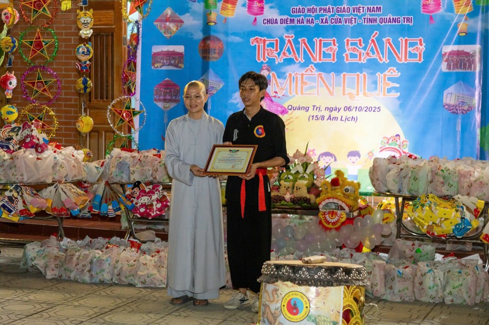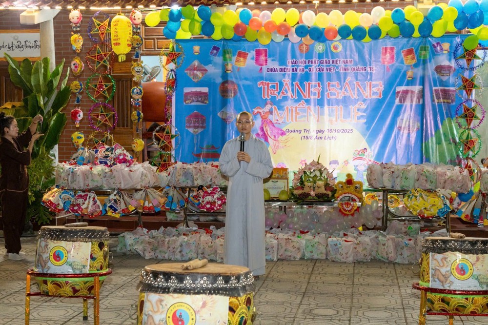PSO - Tối ngày 06/10/2025, không khí Trung thu rộn ràng đã bao trùm lên thôn 5, xã Cửa Việt, tỉnh Quảng Trị với chương trình “Trăng Sáng Miền Quê” đầy ý nghĩa, do Sư cô Thiên Giác làm Trưởng BTC, cùng sự đồng hành của thanh niên tình nguyện, các Mạnh thường quân và Câu lạc bộ Võ Kinh Vạn An (Trường Đại học Kinh tế Huế). Đêm hội “Vầng Trăng Yêu Thương” đã mang đến niềm vui, sự sẻ chia và những bài học giá trị cho các em thiếu nhi tại địa phương.