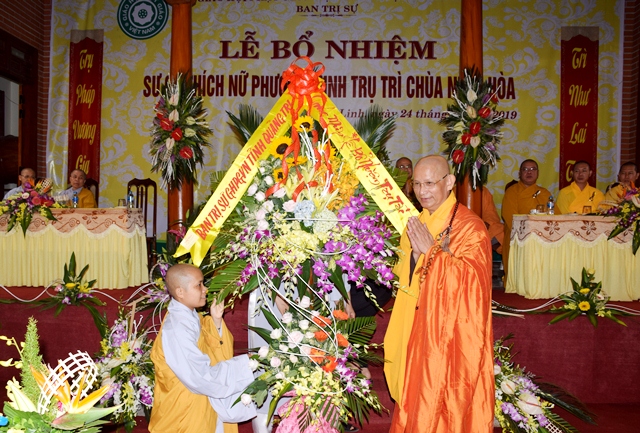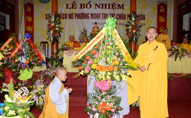 Thay mặt BTS tỉnh, Thượng tọa Phó Ban kiêm Chánh Thư ký BTS GHPGVN tỉnh đã tuyên đọc quyết định Bổ nhiệm SC Thích nữ Phương Minh đảm nhận nhiệm vụ Trụ trì chùa Nhất Hòa.