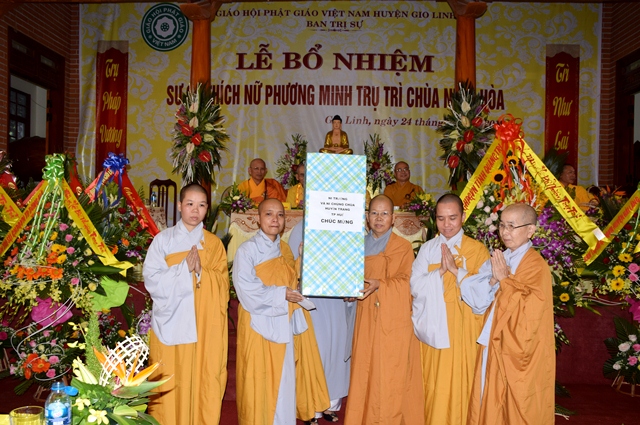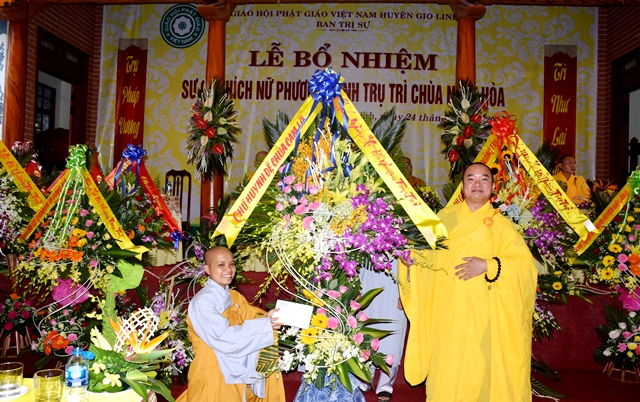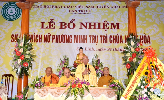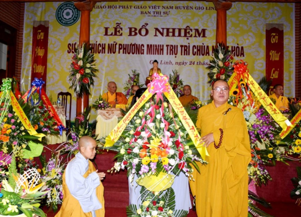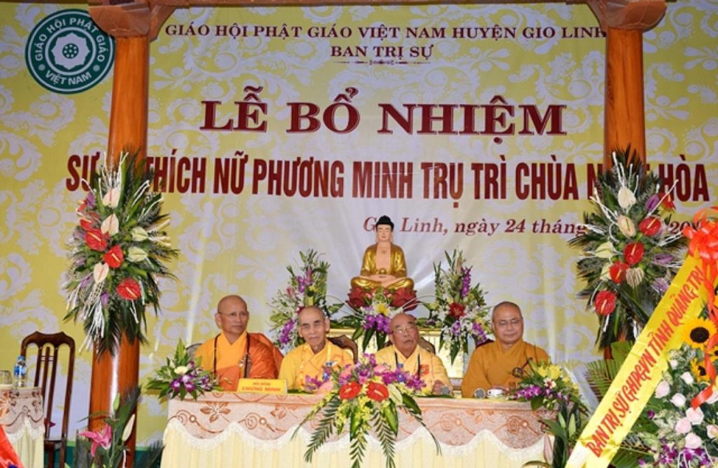 PSO - Sáng ngày 24/2/2019( nhằm ngày 20 tháng Giêng năm Kỷ Hợi), thừa ủy nhiệm của Ban Trị sự GHPGVN tỉnh Quảng Trị, Ban Trị sự GHPGVN huyện Gio Linh kết hợp với Ban Hộ tự chùa Nhất Hòa, trang nghiêm tổ chức Lễ Bổ nhiệm Sư Cô Thích nữ Phương Minh làm Trụ trì chùa Nhất Hòa- xã Gio Hòa, huyện Gio Linh