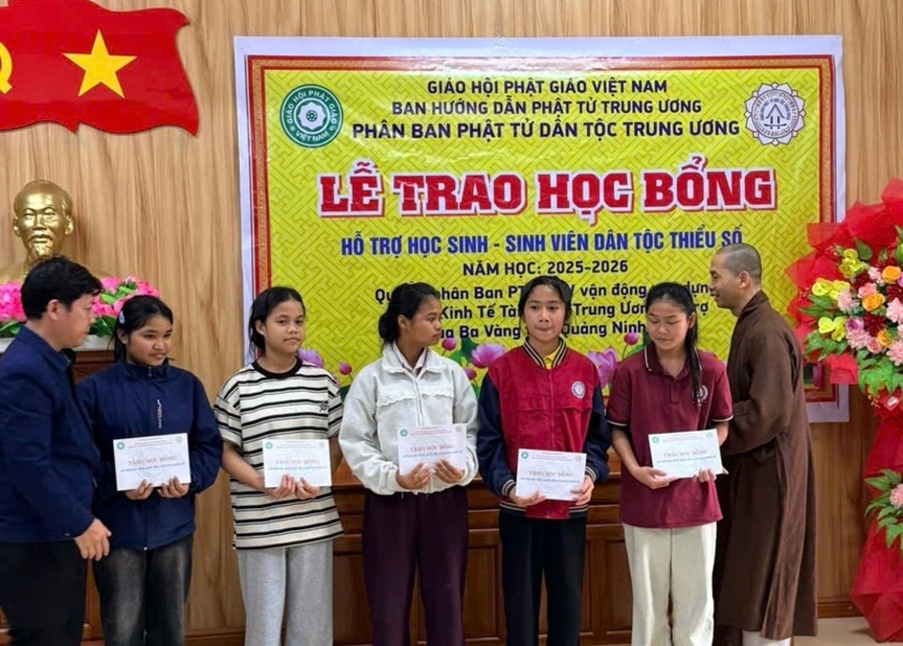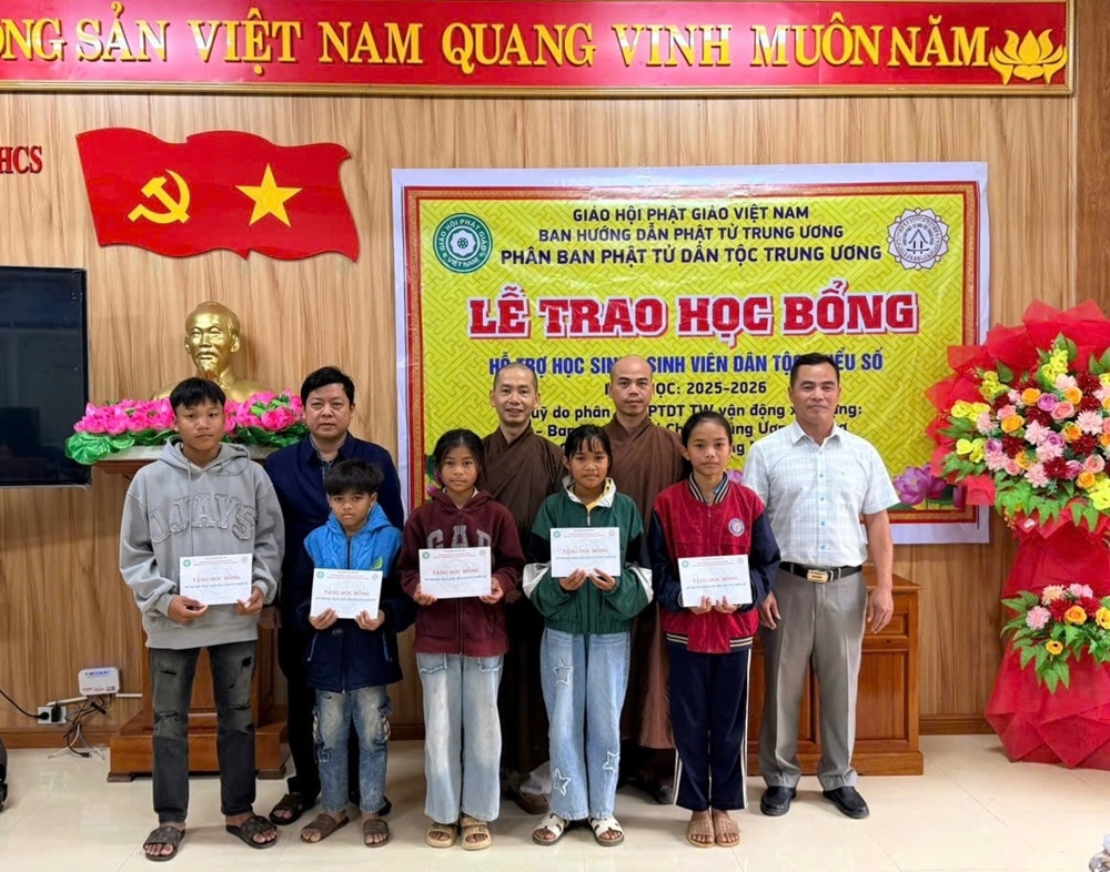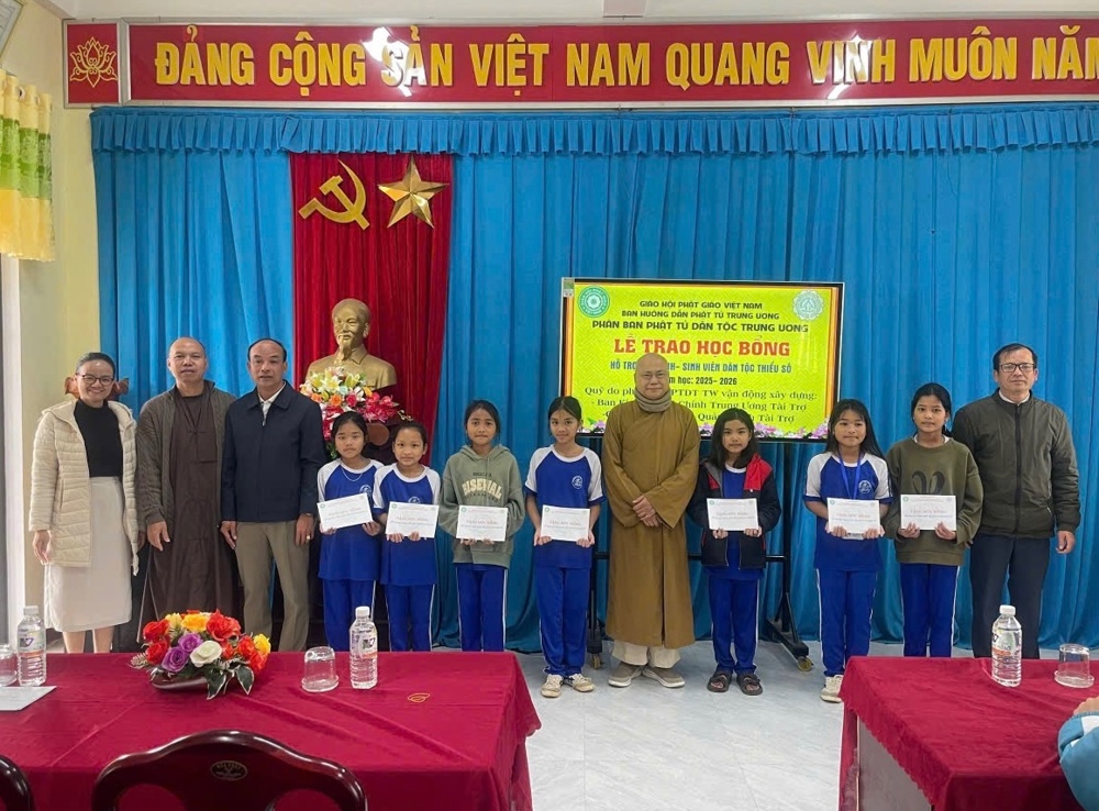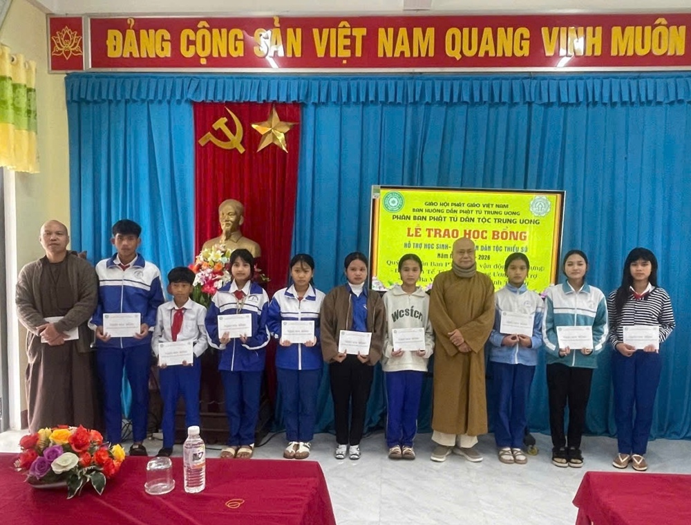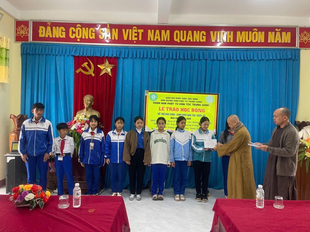 PSO: Nằm trong chuỗi hoạt động chăm lo cho thế hệ trẻ vùng cao, ngày 04/02/2026, Phân ban Phật tử Dân tộc (PTDT) Trung ương GHPGVN đã tổ chức chương trình trao học bổng kỳ II (năm học 2025-2026) cho 30 em học sinh đồng bào dân tộc thiểu số có hoàn cảnh khó khăn tại tỉnh Quảng Trị.