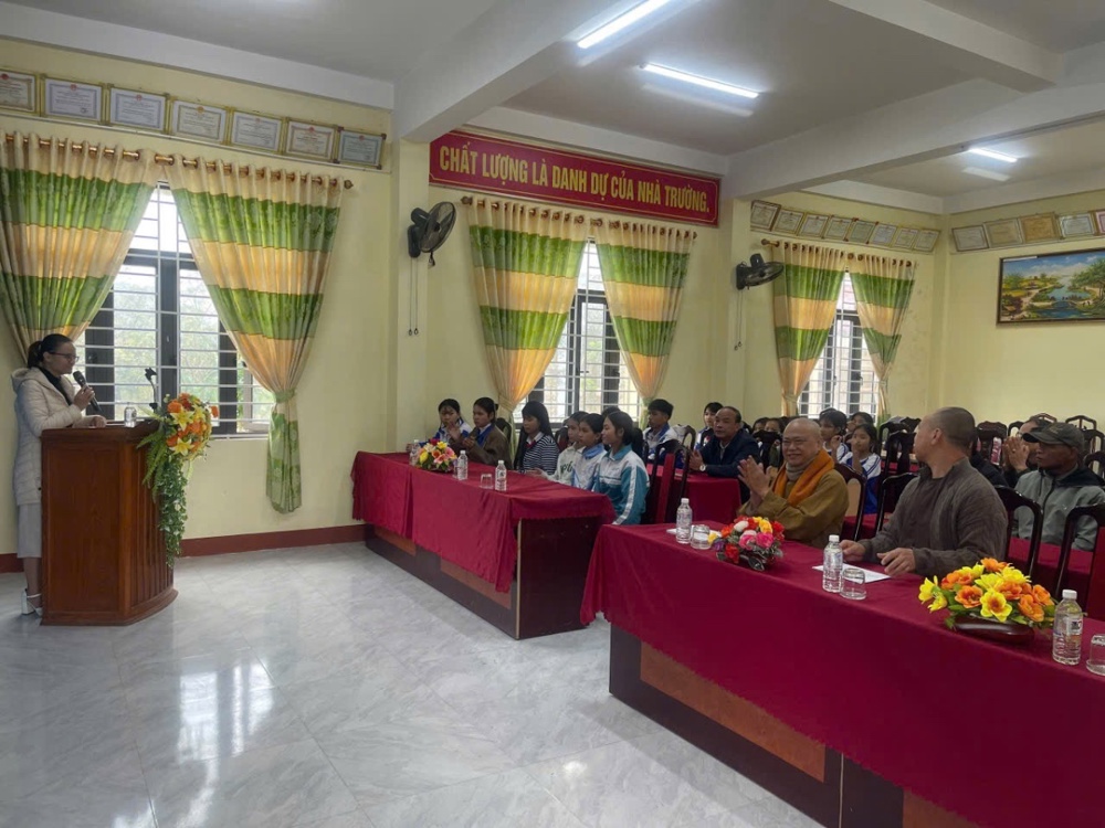 Thay mặt nhà trường, đại diện Ban Giám hiệu đã gửi lời tri ân sâu sắc đến Chư tôn đức và các nhà tài trợ. Sự đồng hành của Giáo hội không chỉ giúp các em học sinh có thêm điều kiện tới trường mà còn lan tỏa giá trị tốt đẹp của đạo Phật trong việc xây dựng xã hội học tập.