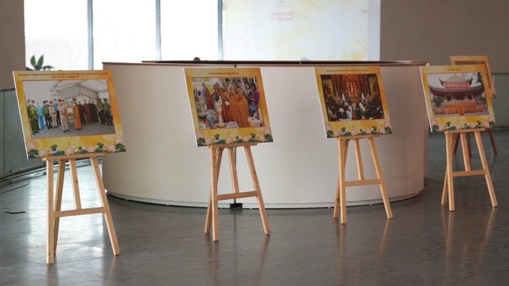 Bên cạnh đó, gần 50 bức ảnh xoay quanh nội dung “Phật giáo đồng hành xây dựng Thủ đô phát triển văn minh, hiện đại, hạnh phúc” đã được chọn lọc kĩ lưỡng, trưng bày dọc sảnh của Bảo tàng. Những sự kiện ý nghĩa, đặc sắc với sự đồng hành của Phật giáo thủ đô trong suốt 5 năm qua đã được khơi nhắc lại qua từng bức ảnh.