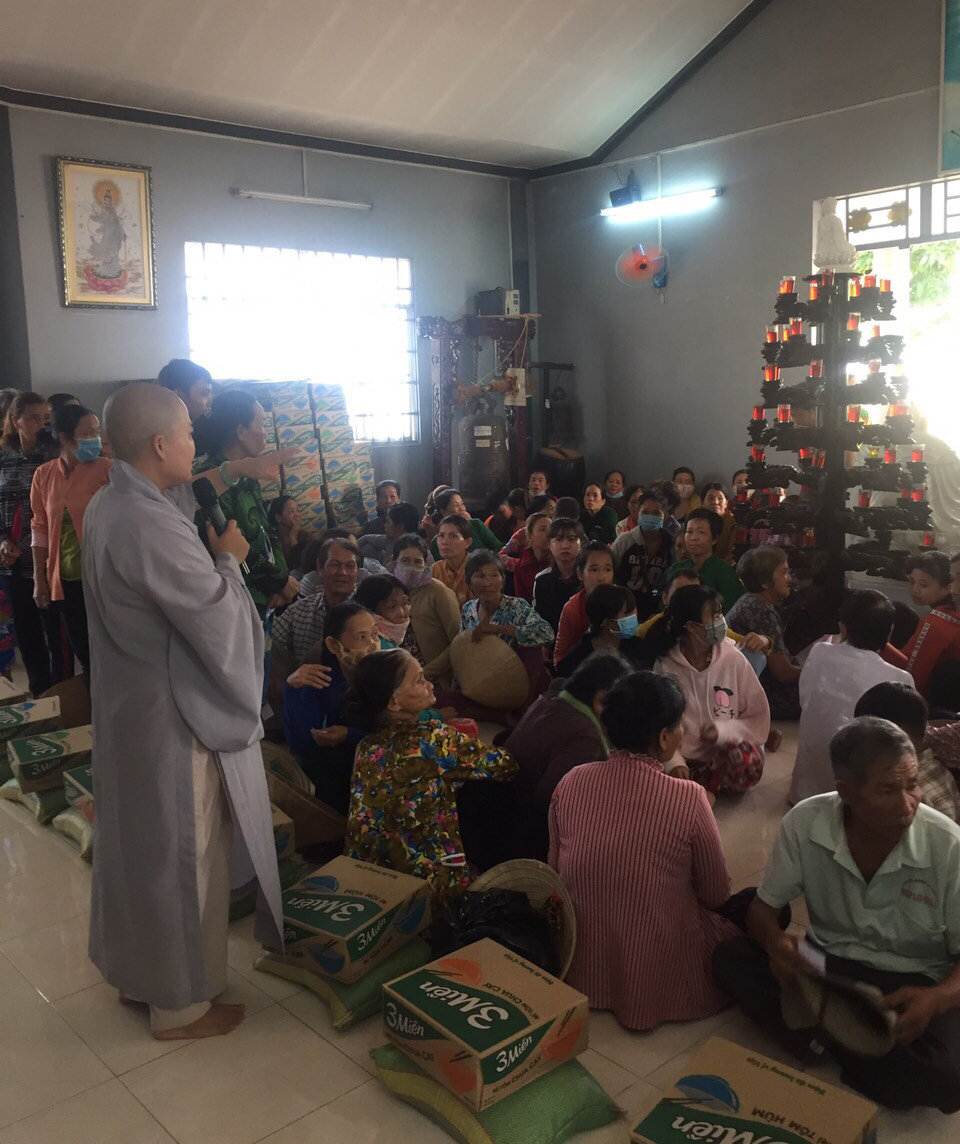 Nhân mùa Vu lan Báo hiếu PL.2564-DL.2020, để tri ân và báo ân cha mẹ theo truyền thống hiếu đạo của người con Phật, nhóm Lộc Uyển (quận 6, TP.HCM), gia đình Phật tử Diệu Tâm và Lê Thị Xứng (Hoa Kỳ) cùng các nhà hảo tâm khác đã hỗ trợ cho Sư cô Trụ trì tổ chức trao tặng 480 phần quà (mỗi phần gồm: gạo, mì và các thực phẩm khác) cho bà con nghèo, có hoàn cảnh khó khăn tại Cồn Bàn. Quà chia thành hai đợt để trao tặng, lần thứ nhất vào ngày 30/08/2020 (nhằm ngày 12/7 năm Canh Tý) lần thứ hai vào ngày 03/09/2020 (nhằm ngày 15/7 năm Canh Tý).