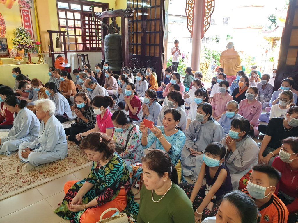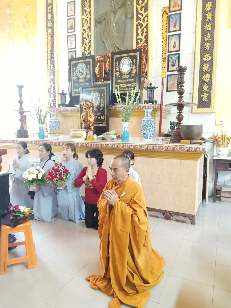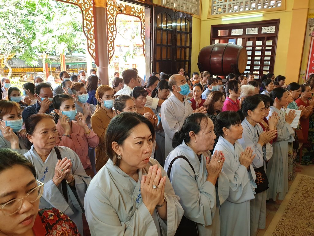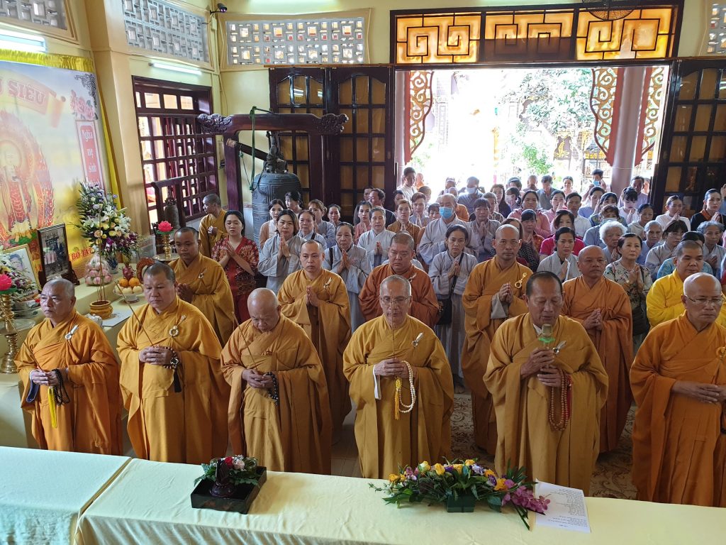 Sau nghi thức niệm Phật cầu gia hộ, chư Tôn đức và Phật tử đồng trang nghiêm dành 1 phút thành kính tưởng nhớ Giác linh HT.Thích Thiện Sanh - bậc Tôn trưởng, có công đức to lớn với Phật giáo tỉnh Sóc Trăng, tiền nhiệm Trụ trì chùa Khánh Sơn.