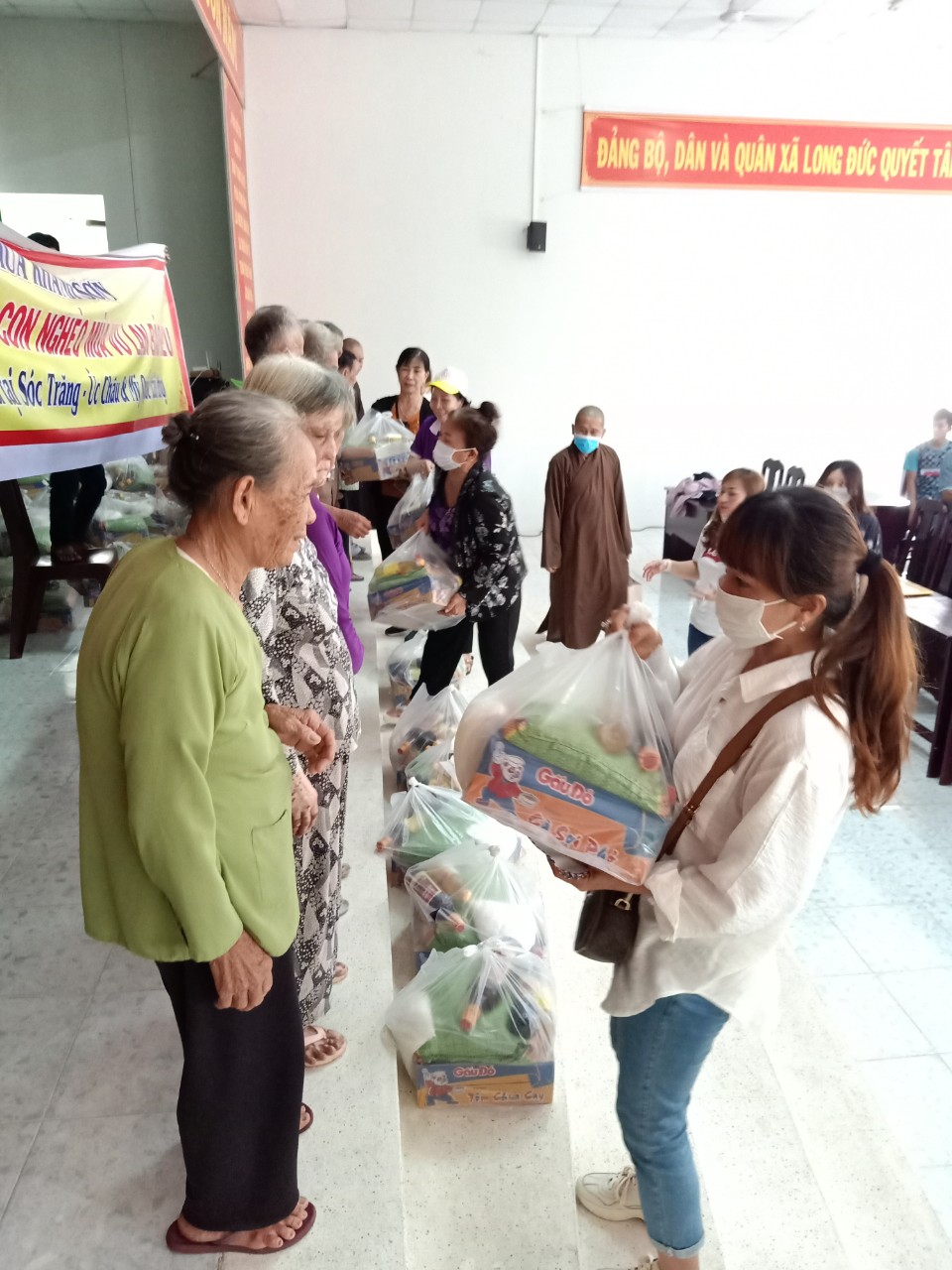 Được biết, trước đó vào ngày 22/08/2020 (mùng 4/7 năm Canh Tý) nhằm giúp người nghèo vượt qua khó khăn trong bối cảnh cả nước đang phòng chống dịch bệnh Covid-19, ĐĐ.Thích Thiện Minh - Trụ trì chùa Khánh Sơn đã vận động các nhà hảo tâm và Phật tử gần xa ủng hộ trao tặng 250 phần quà cho bà con có hoàn cảnh khó khăn tại xã Long Đức, huyện Long Phú, tỉnh Sóc Trăng. Mỗi phần quà trị giá 250.000 đồng (gồm; bì thư, gạo, mì gói, dầu ăn, nước tương, đường).