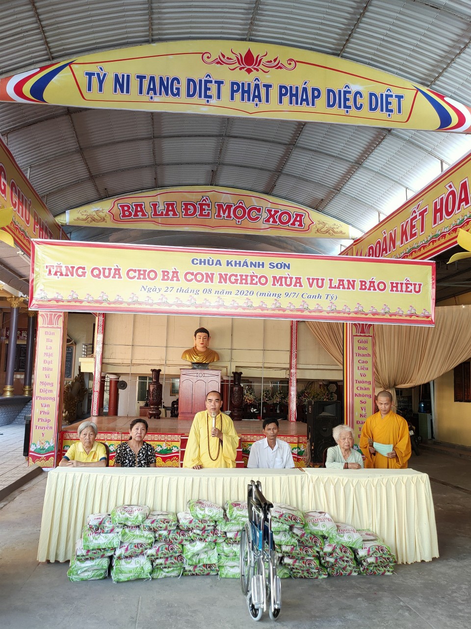 Ngày 27/08/2020 (nhằm ngày mùng 9/7 năm Canh Tý) tại chùa Khánh Sơn tiếp tục phát thêm 200 phần quà Vu lan cho người nghèo tại thành phố Sóc Trăng để chia sẻ yêu thương theo tinh thần "lá lành đùm lá rách".
