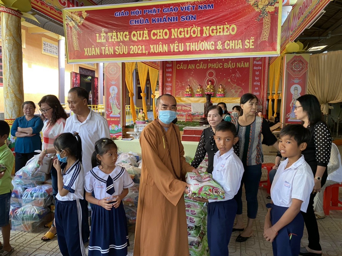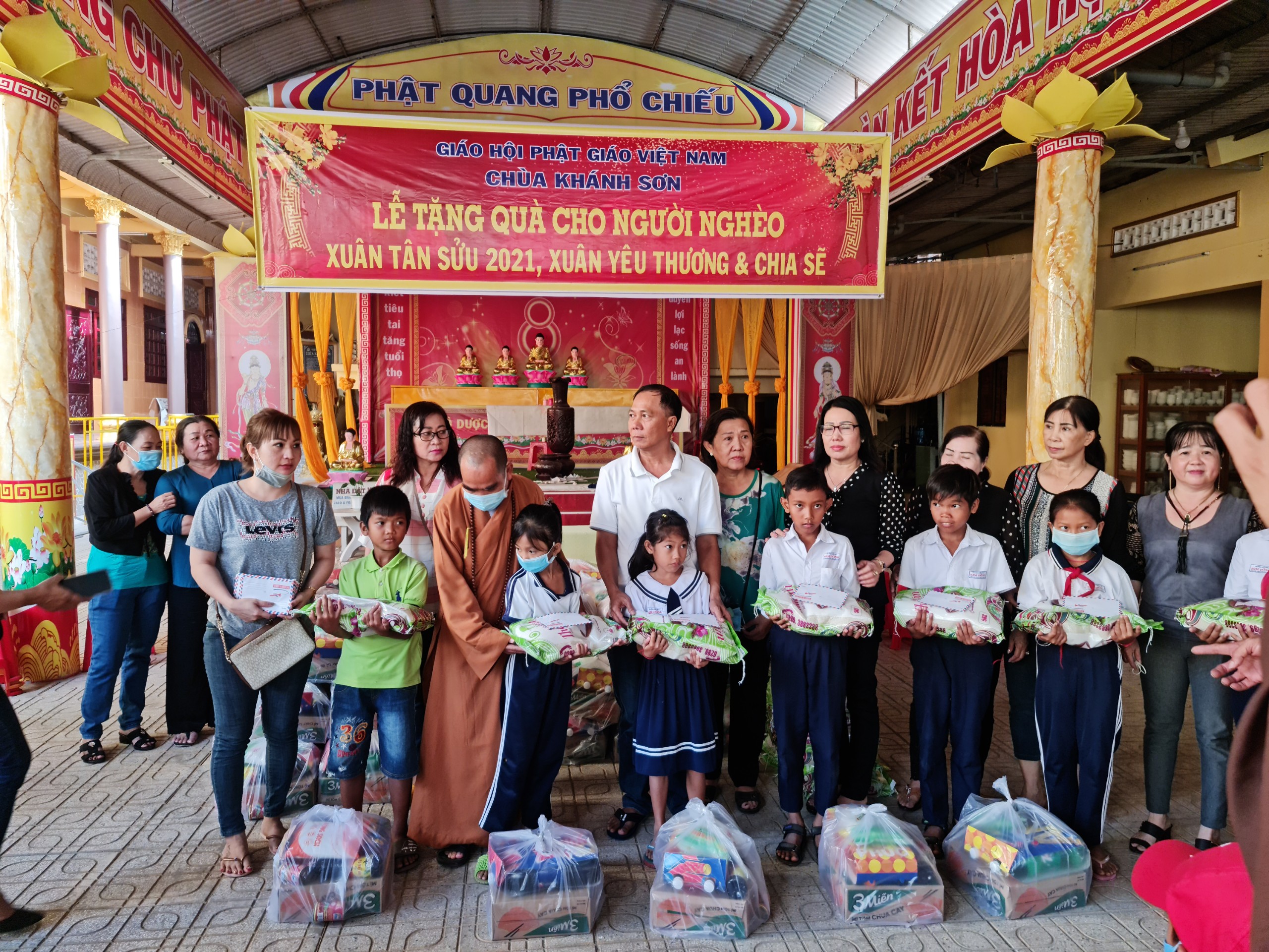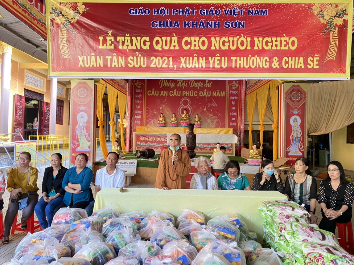 Với tinh thần cứu khổ ban vui, tương thân tương ái, chia sẻ khó khăn với bà con nghèo khi tết Tân Sửu sắp đến. ĐĐ.Thích Thiện Minh - Trụ trì chùa Khánh Sơn, Trưởng ban điều hành "Nhịp cầu Nhân ái" đã vận động các nhà hảo xa gần ủng hộ để tặng những phần quà ý nghĩa, tạo động lực cho người nghèo, học sinh nghèo phấn khởi đón xuân Tân Sửu 2021. Quà được chia làm 3 lần để trao tặng.
