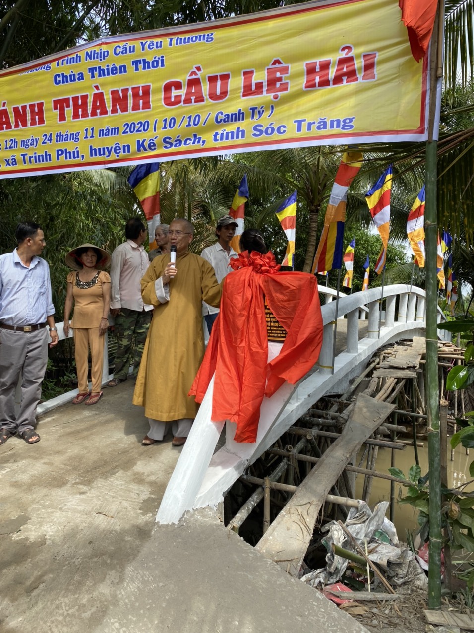 Trước đó, ngày 24/11/2020 (mùng 10/10 năm Canh Tý) các con của ông cùng TT.Thích Minh Hạnh kết hợp với chính quyền địa phương tổ chức cắt băng khánh thành cầu Lệ Hải tọa lạc tại ấp 10, xã Ba Trinh, huyện Kế Sách, tỉnh Sóc Trăng. Cầu được kết cấu bằng bê tông cốt sắt, tải trọng 2 tấn, dài 20 mét, rộng 2,2 mét, tổng kinh phí 150 triệu đồng. Như vậy, tổng giá trị của cầu và phát quà là 200 triệu đồng.