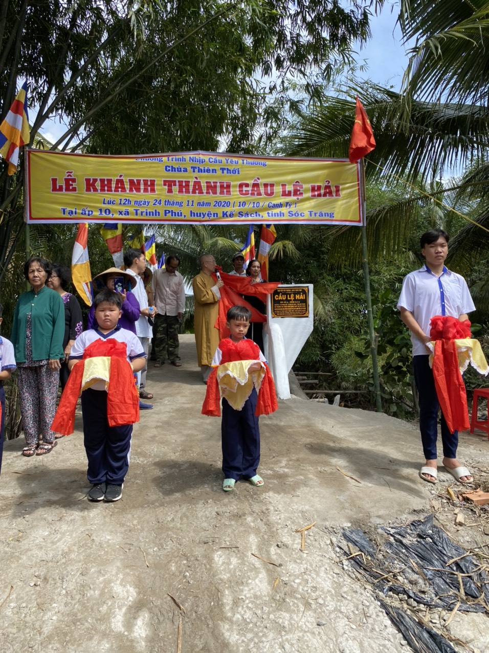 PSO - Sáng ngày 29/11/2020 (ngày 15/10 năm Canh Tý) Thượng tọa Thích Minh Hạnh - Ủy viên HĐTS, Phó trưởng Ban Thường trực BTS GHPGVN tỉnh Sóc Trăng, Trụ trì chùa Thiên Thới (xã Thới An Hội, huyện Kế Sách, tỉnh Sóc Trăng), người sáng lập "Nhịp cầu Yêu thương" cùng gia đình Phật tử Lệ Hải tổ chức trao tặng 200 phần quà cho người nghèo và khánh thành cầu nông thôn tại địa phương với tổng giá trị 200 triệu đồng.