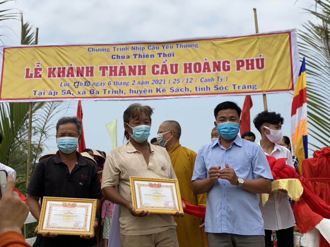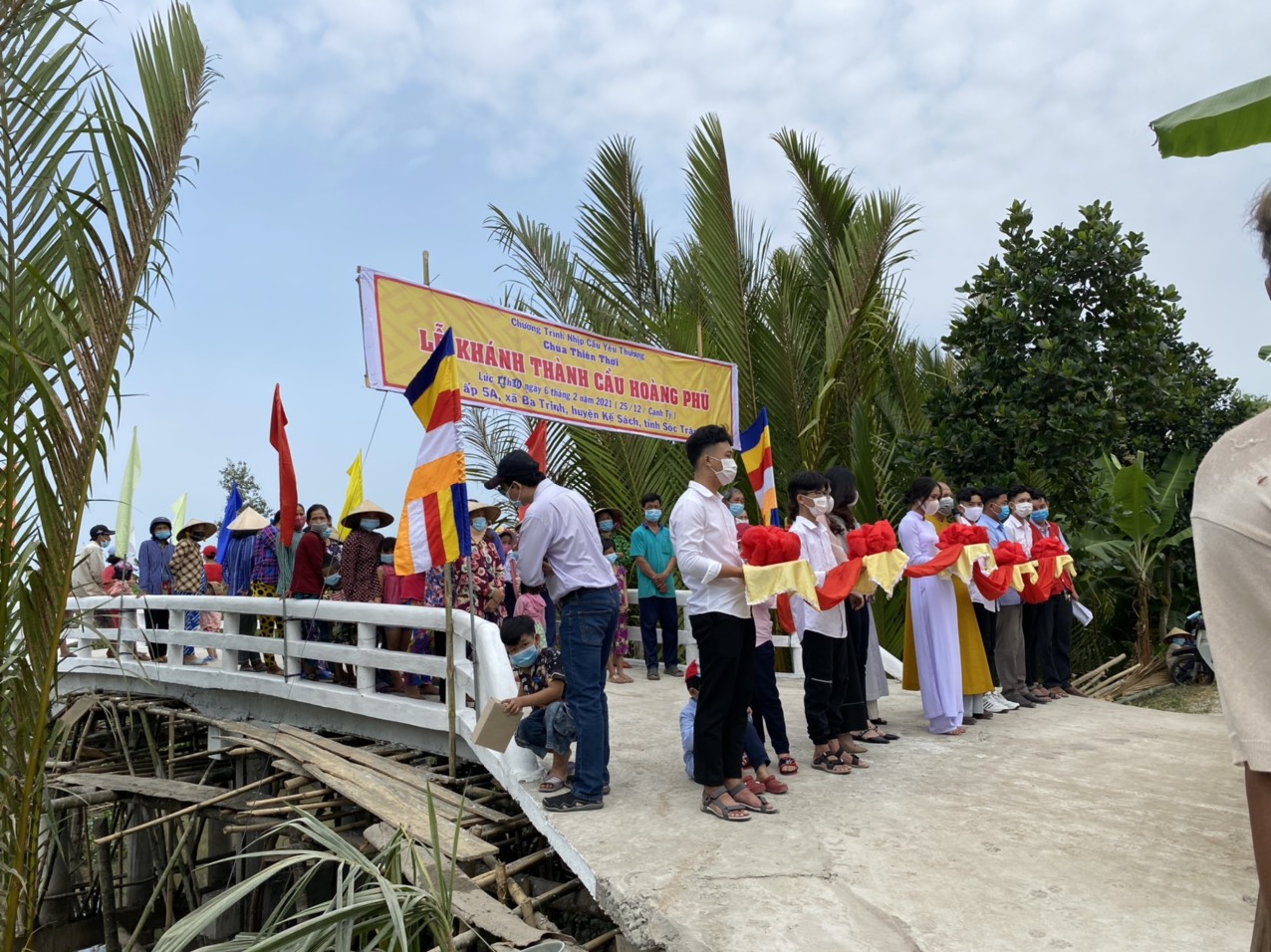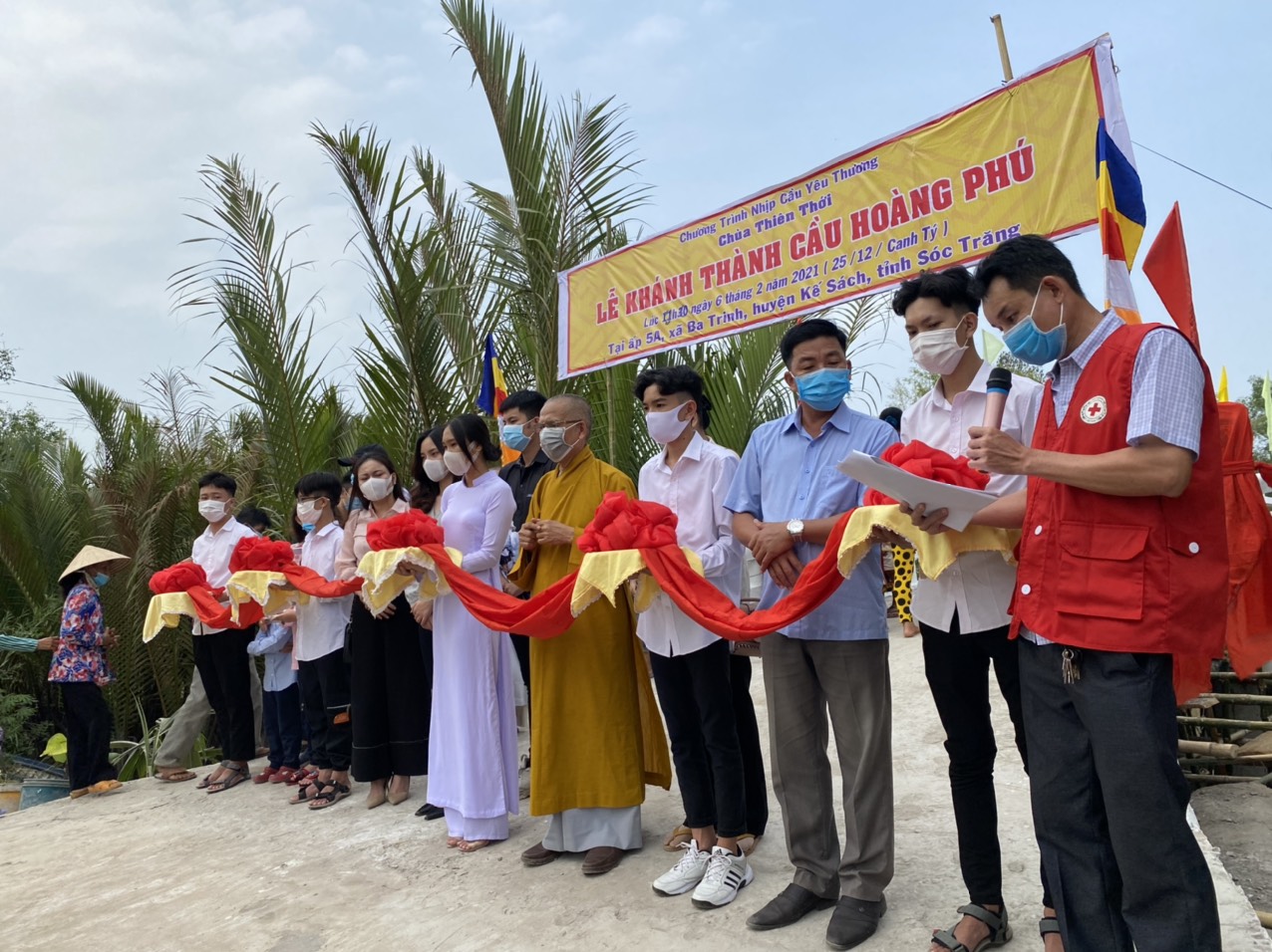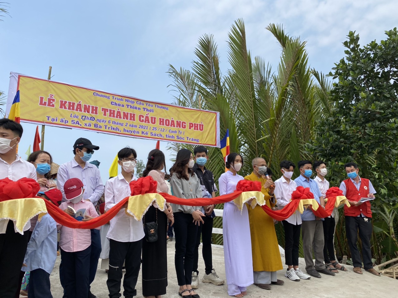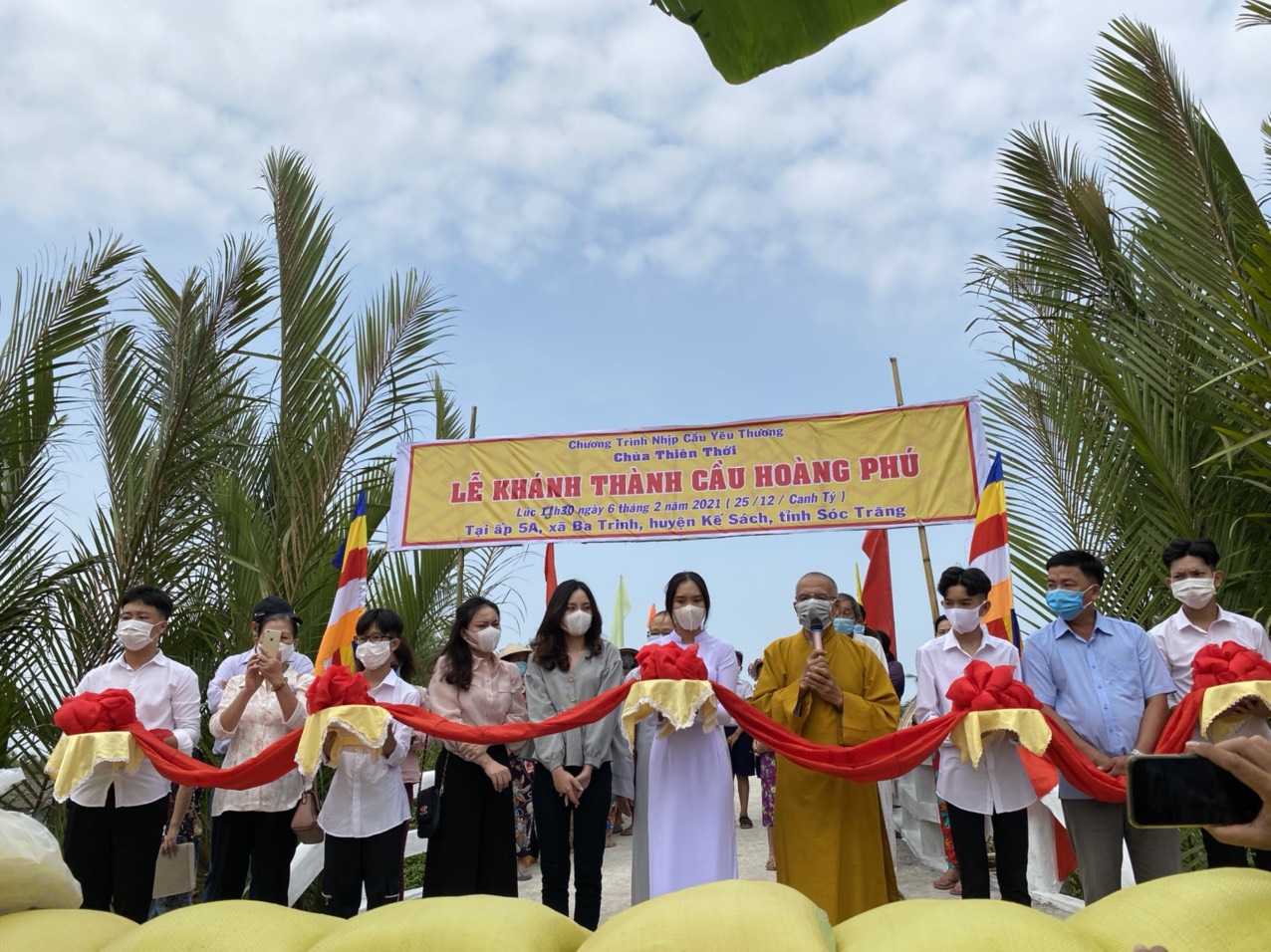 PSO - Trưa ngày 06/02/2021 (nhằm ngày 25/12 năm Canh Tý) Hòa thượng Thích Minh Hạnh – Ủy viên HĐTS, Phó trưởng Ban Thường trực BTS GHPGVN tỉnh Sóc Trăng, Trụ trì chùa Thiên Thới, người sáng lập “Nhịp cầu Yêu thương” đã phối hợp cùng chính quyền địa phương, nhà tài trợ long trọng tổ chức cắt băng khánh thành cầu nông thôn; đồng thời trao tặng 300 phần quà cho người nghèo nhân dịp đón xuân Tân Sửu 2021.