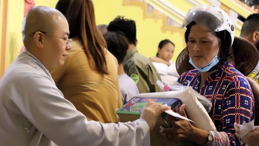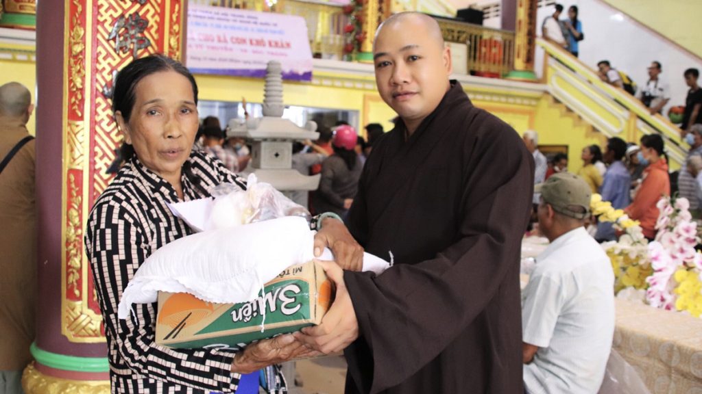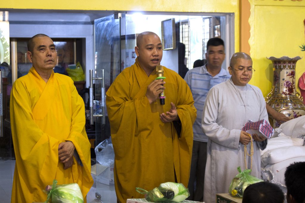 Đại đức cũng cho biết những phần quà nhỏ này tượng trưng cho lộc của Đức Phật, mong bà con nhận những phần lộc Phật này để có nhiều năng lượng an lành tu dưỡng thân tâm và vươn lên thoát khỏi nhiều khó khăn trong cuộc sống. Đại đức còn khuyên bà con cố gắng phát khởi thiện tâm làm nhiều việc lành để gieo trồng phước báu cho bản thân và gia đình mình. Sau cùng thầy hướng dẫn bà con niệm Phật để thay lời tri ân đến các Phật tử, các mạnh thường quân gần xa đã chia sẻ những phần quà tình thương này.