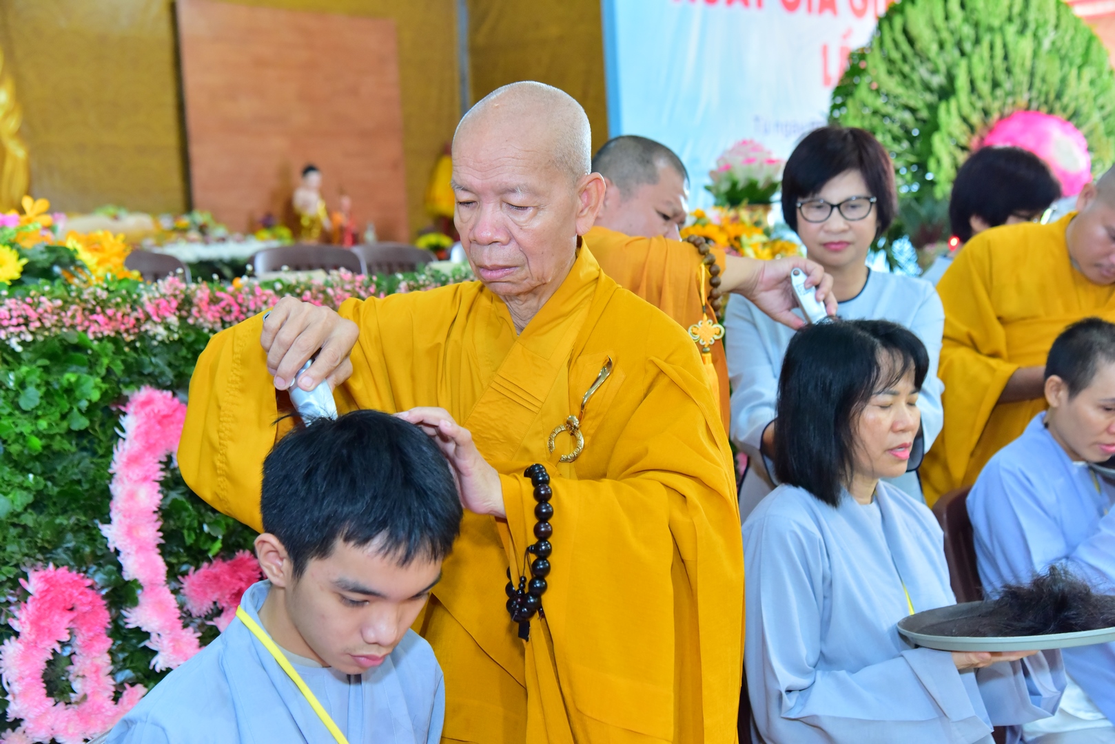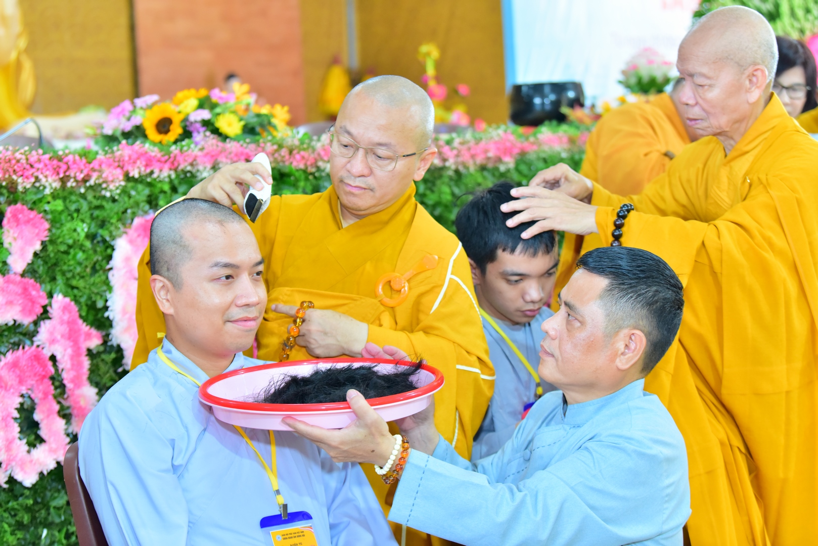 Tiếp theo đó, chư vị tam sư thất chứng đồng thực hiện nghi thức quán đảnh sái tịnh và lần lượt thế phát cho 218 nam nữ hành giả. Từ đây, vun bồi hạt giống bồ đề, trưởng dưỡng đạo tâm nơi những người con Phật. Cũng từ đây, những búp sen mới nở giữ rừng thiền Quan Âm Đông Hải bắt đầu "phát túc siêu phương", đặt bước chân đầu tiên vào cửa đạo thênh thang nhuộm màu giác ngộ.