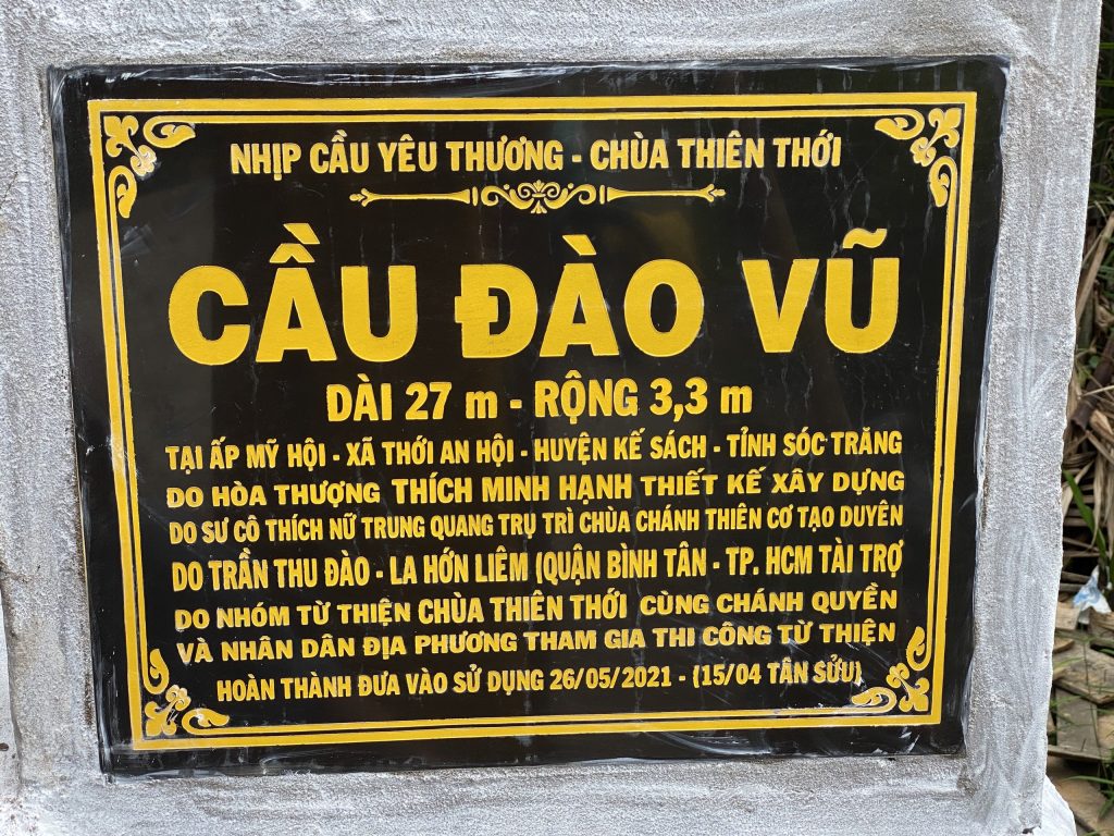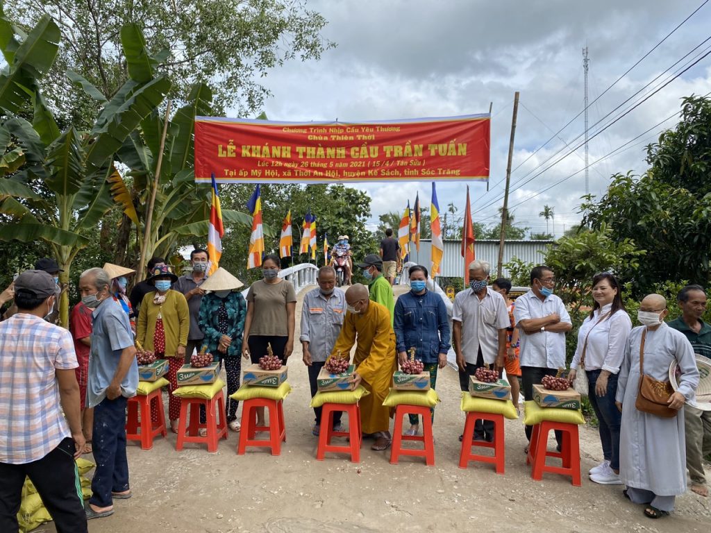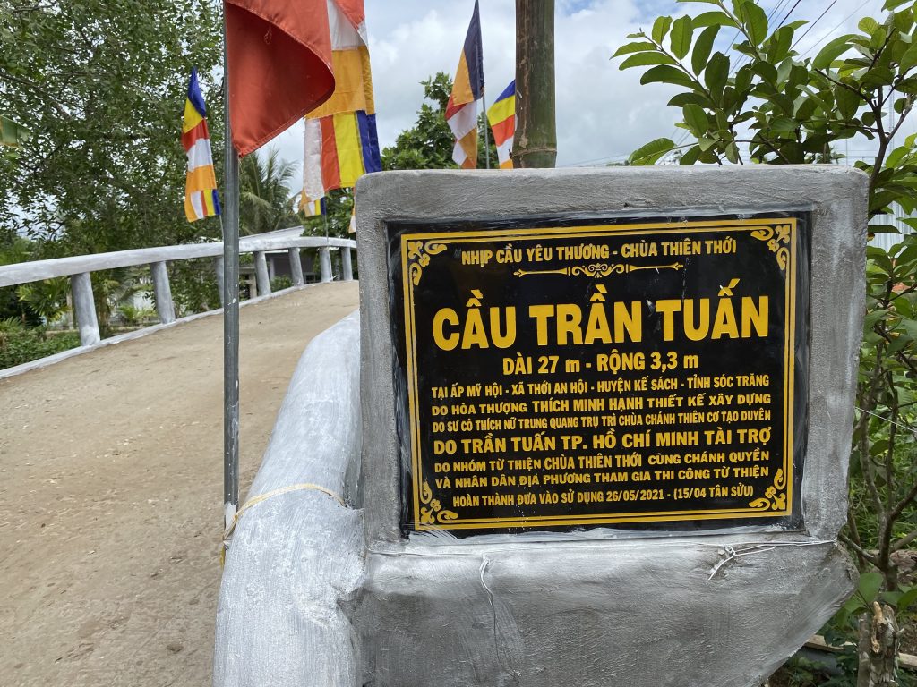 Cầu Trần Tuấn do Sư cô Thích Nữ Trung Quang - Trụ trì chùa Chánh Thiên Cơ (Kế Sách) giới thiệu, gia đình ông Trần Tuấn (TP.HCM) ủng hộ vật tư. Tổng giá trị của 2 cầu là 320 triệu đồng.
