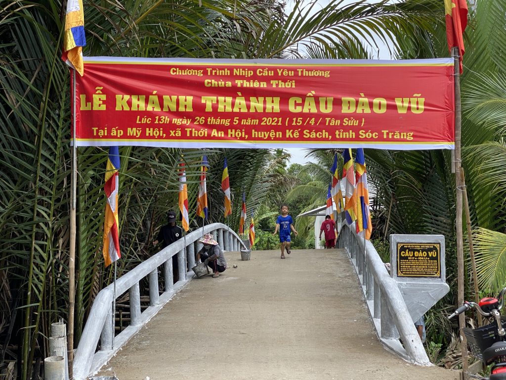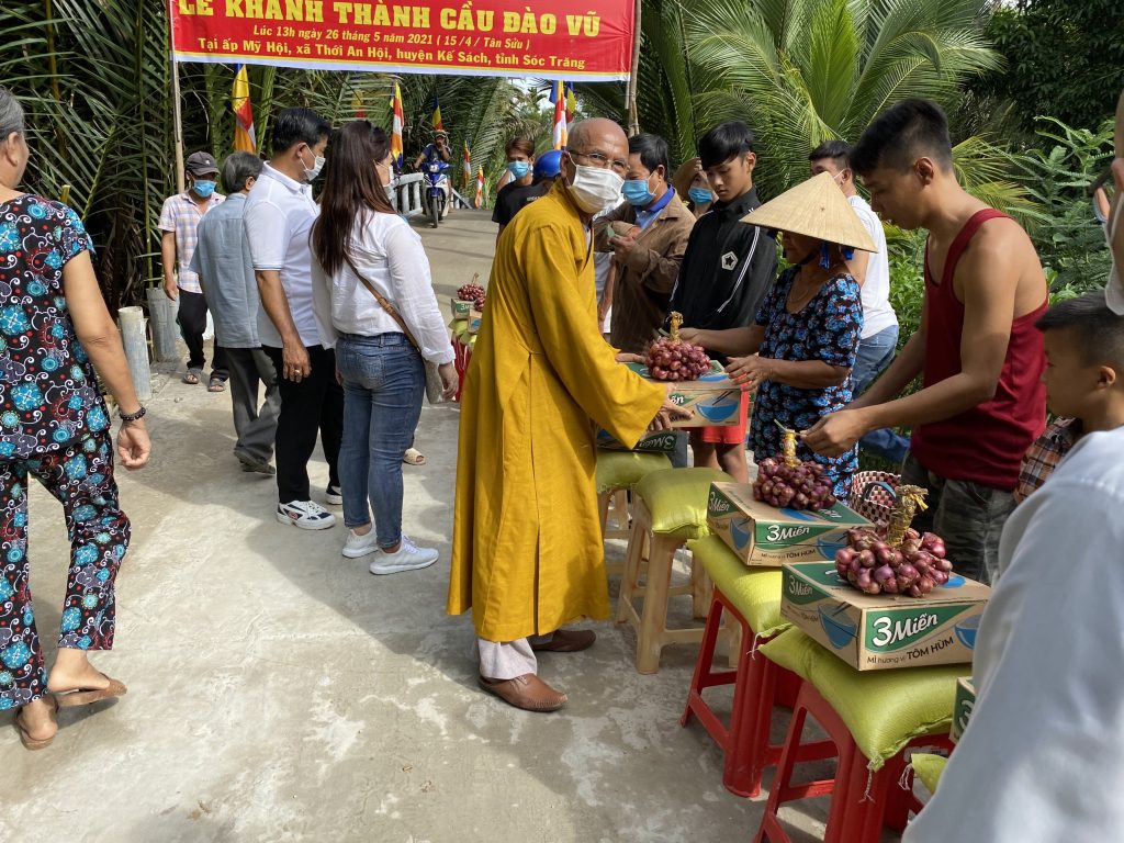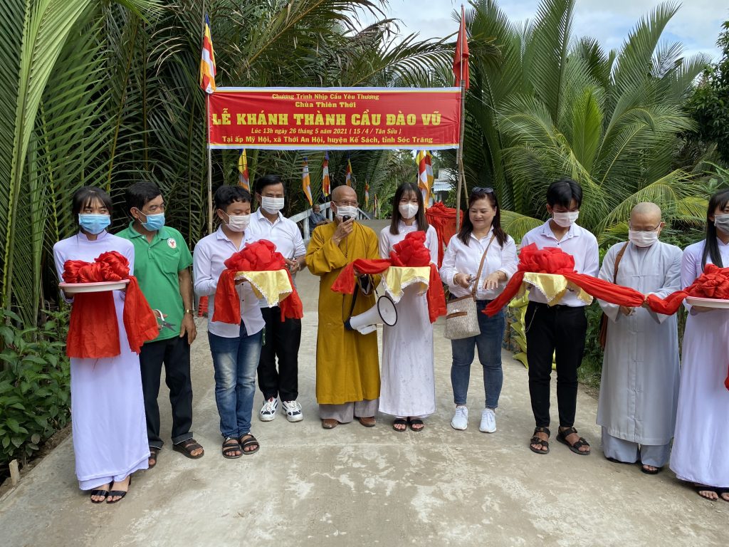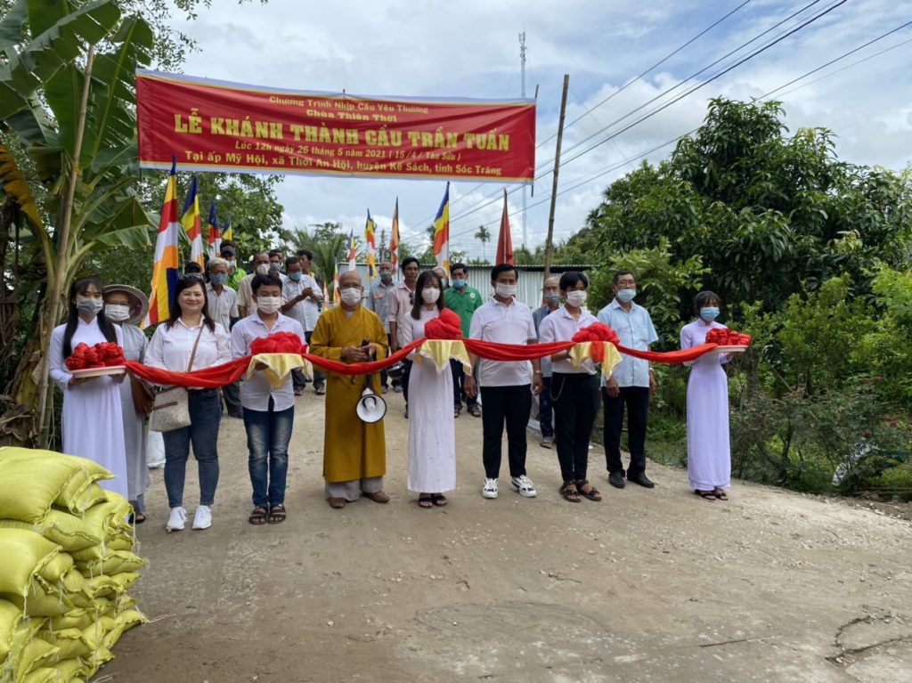 PSO - Cung kính đón mừng Đại lễ Phật Đản PL.2565, chiều ngày 26/5/2021 (nhằm ngày 15/4 năm Tân Sửu) Hòa thượng Thích Minh Hạnh - Ủy viên HĐTS, Phó trưởng Ban Thường trực BTS GHPGVN tỉnh Sóc Trăng, Trụ trì chùa Thiên Thới đã kết hợp cùng chính quyền địa phương và nhà tài trợ long trọng tổ chức cắt băng khánh thành 2 cầu nông thôn; đồng thời trao tặng 200 phần quà cho bà con nghèo với tổng giá trị 360 triệu đồng.