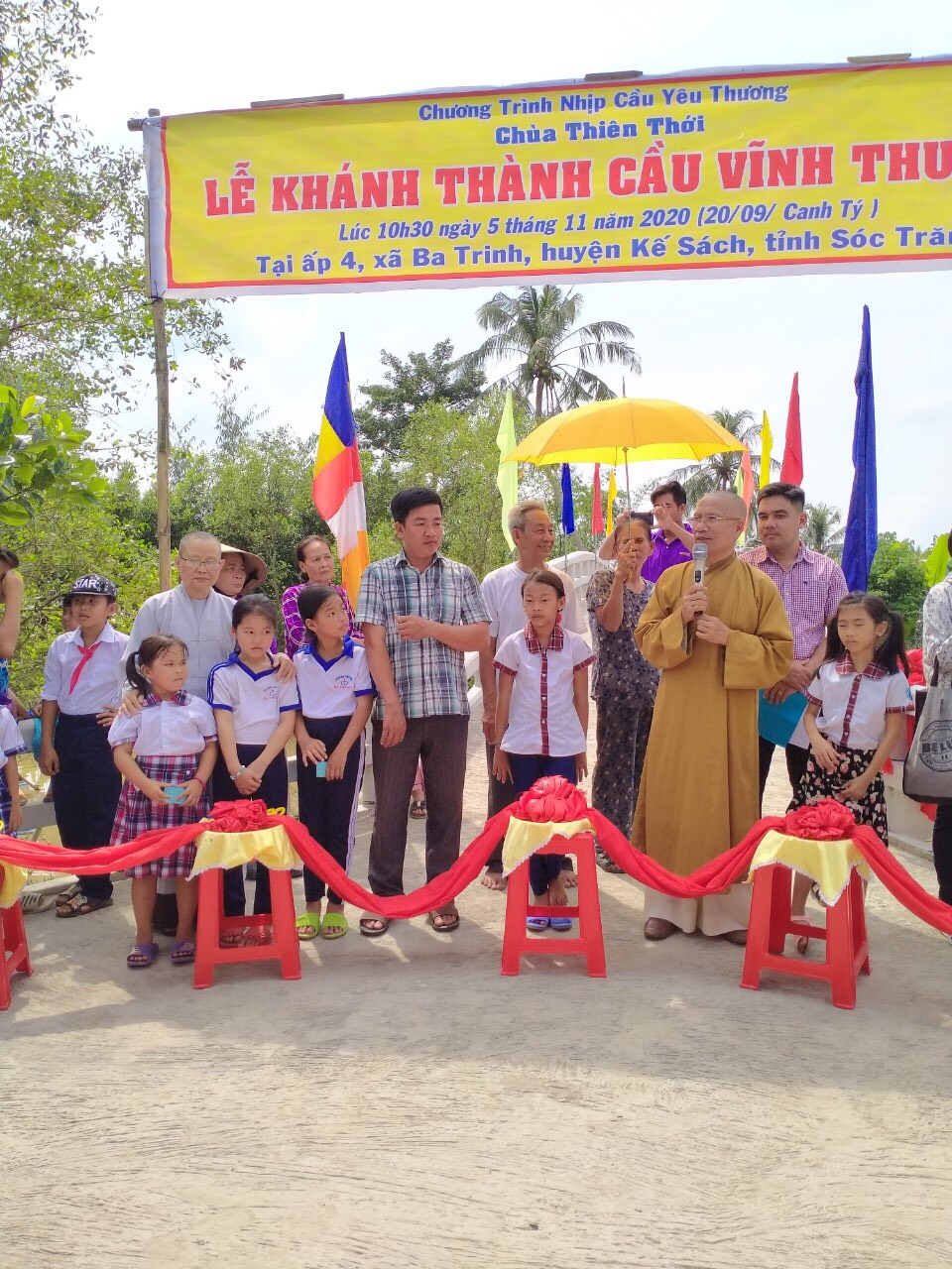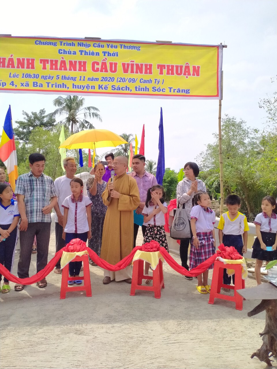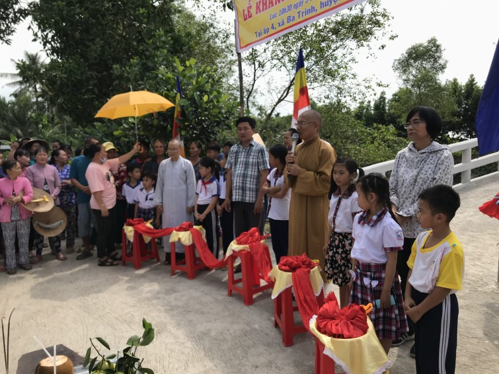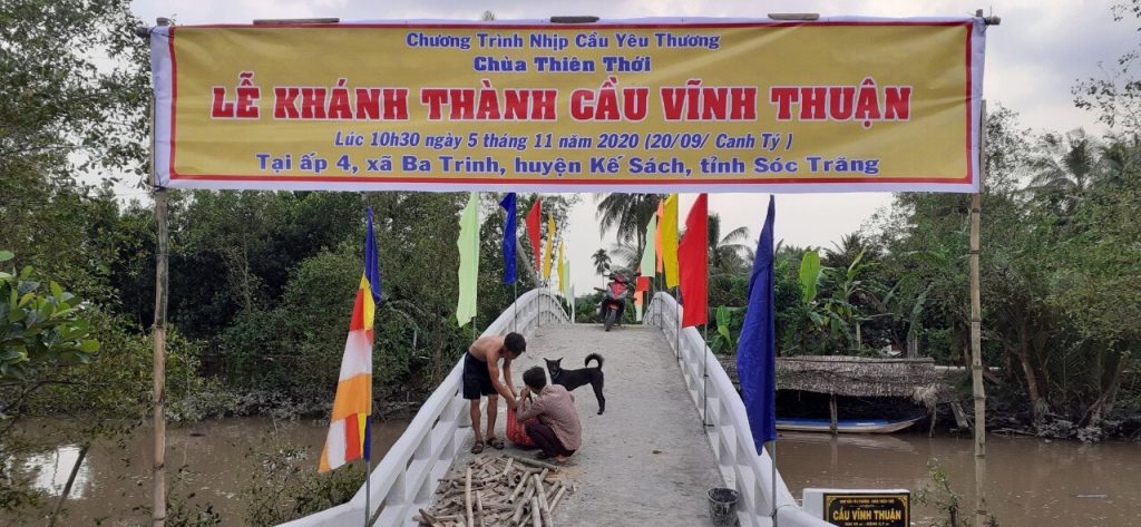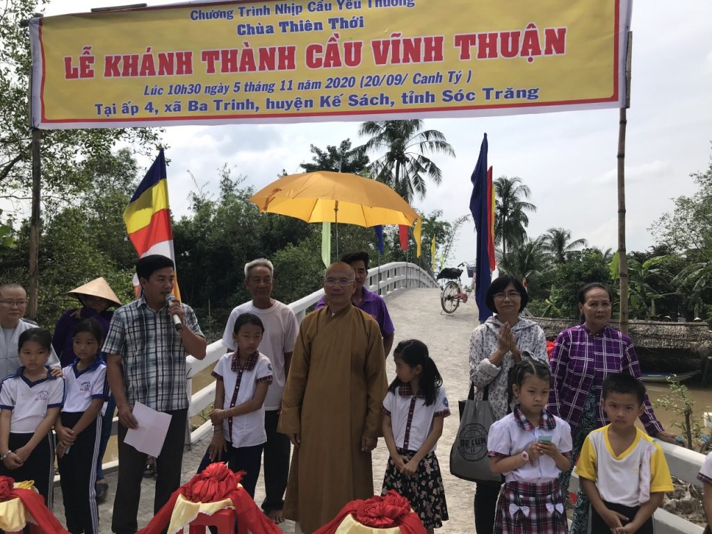 PSO - Trưa ngày 05/11/2020 (nhằm ngày 20/9 năm Canh Tý) Thượng tọa Thích Minh Hạnh - Ủy viên HĐTS, Phó trưởng Ban Thường trực BTS GHPGVN tỉnh Sóc Trăng, Trụ trì chùa Thiên Thới, người sáng lập "Nhịp cầu Yêu thương" đã kết hợp cùng chính quyền địa phương, nhà tài trợ long trọng tổ chức cắt băng khánh thành cầu Vĩnh Thuận; đồng thời trao tặng 100 phần quà cho người nghèo và học sinh với tổng giá trị 415 triệu đồng.