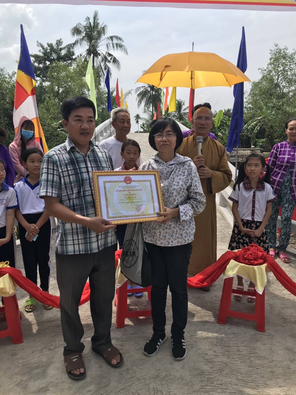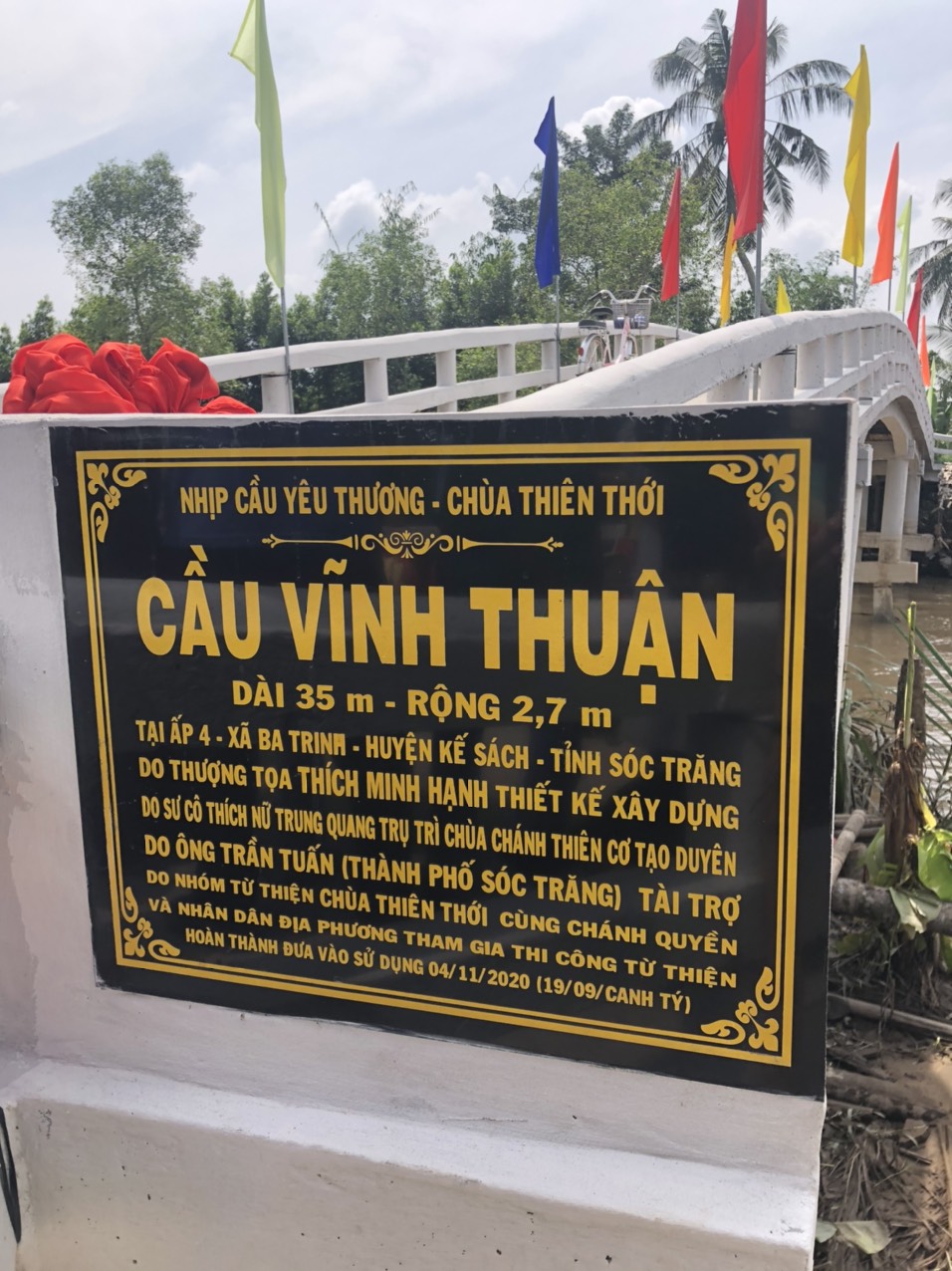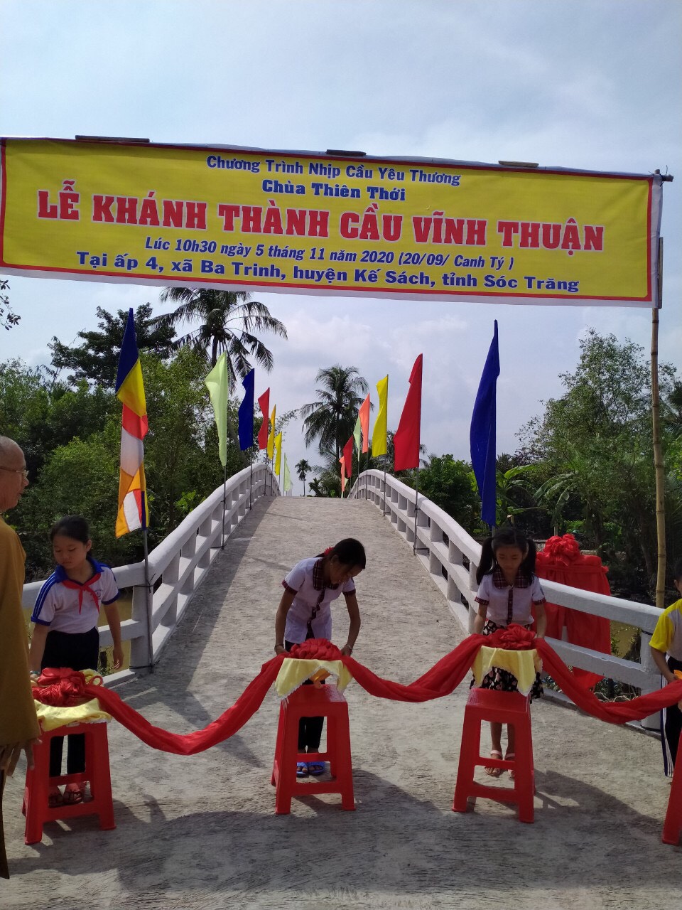 PSO - Trưa ngày 05/11/2020 (nhằm ngày 20/9 năm Canh Tý) Thượng tọa Thích Minh Hạnh - Ủy viên HĐTS, Phó trưởng Ban Thường trực BTS GHPGVN tỉnh Sóc Trăng, Trụ trì chùa Thiên Thới, người sáng lập "Nhịp cầu Yêu thương" đã kết hợp cùng chính quyền địa phương, nhà tài trợ long trọng tổ chức cắt băng khánh thành cầu Vĩnh Thuận; đồng thời trao tặng 100 phần quà cho người nghèo và học sinh với tổng giá trị 415 triệu đồng.