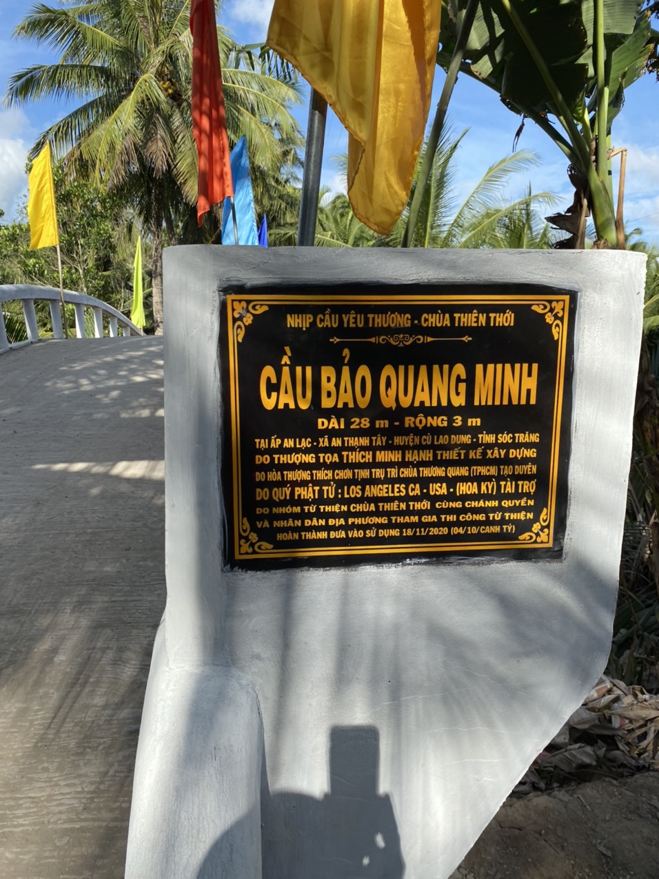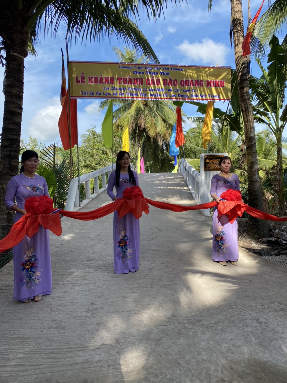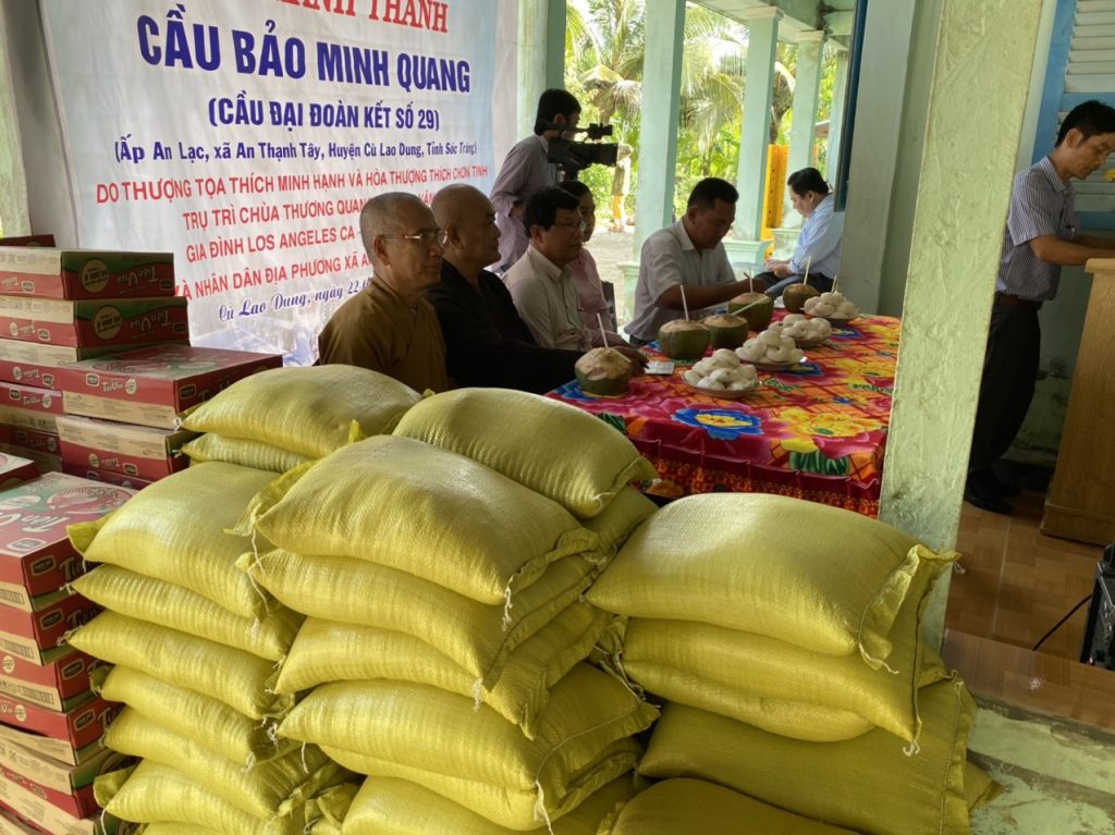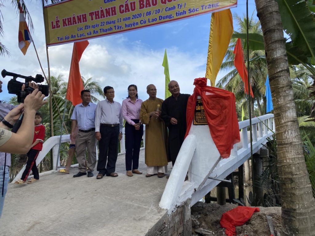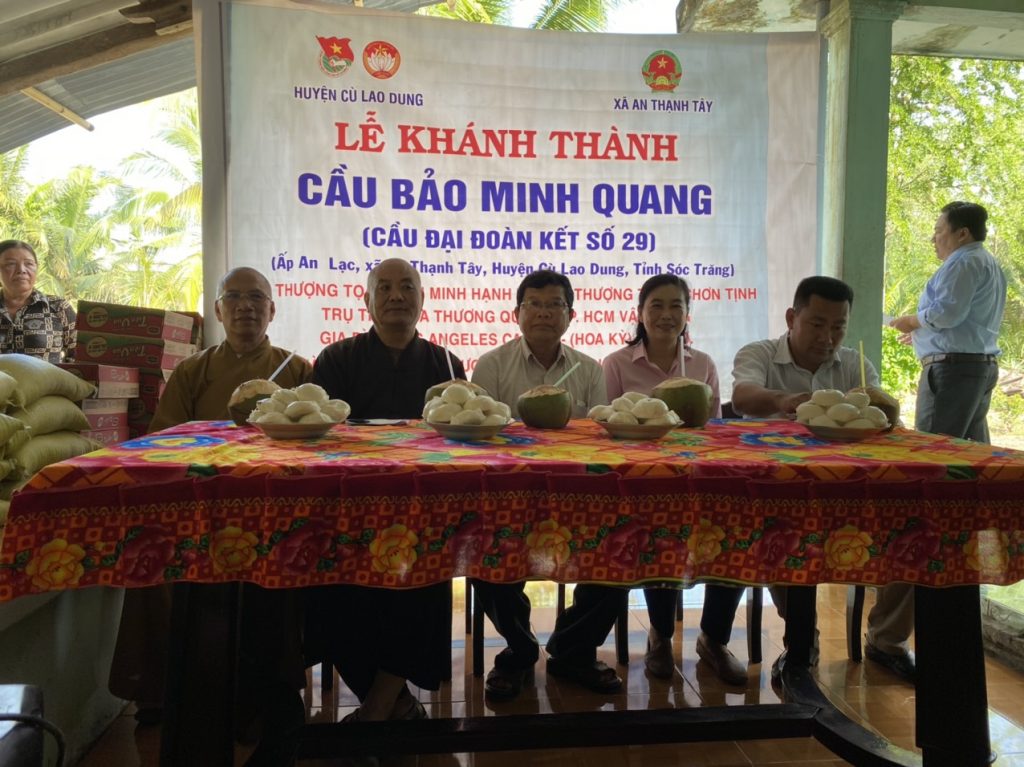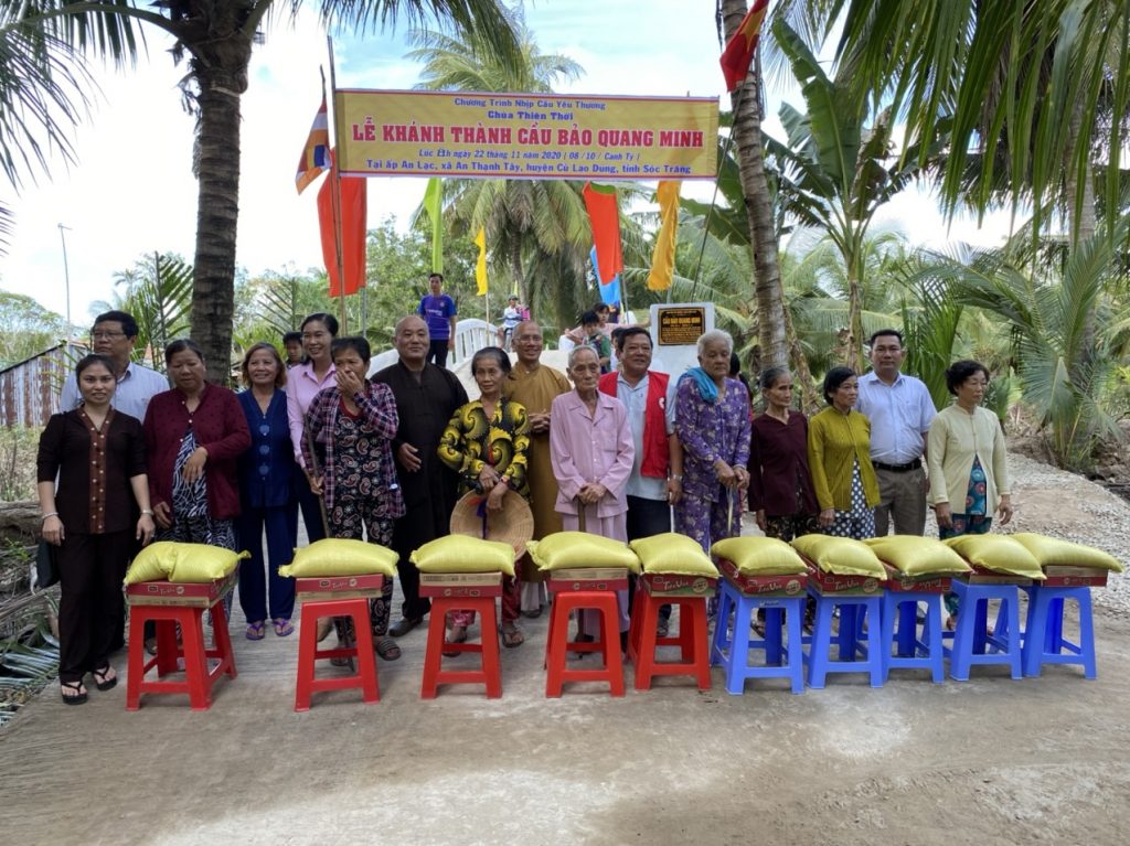 PSO - Trưa ngày 22/11/2020 (mùng 8/10 năm Canh Tý) Thượng tọa Thích Minh Hạnh - Ủy viên HĐTS, Phó trưởng Ban Thường trực BTS GHPGVN tỉnh Sóc Trăng, Trụ trì chùa Thiên Thới, người sáng lập "Nhịp cầu Yêu thương" kết hợp cùng chính quyền địa phương, nhà tài trợ tổ chức cắt băng khánh thành cầu Bảo Quang Minh và phát quà cho người nghèo; đồng thời phóng sanh 500 kg cá, góp phần tái tạo nguồn sống thiên nhiên của thủy sản tại huyện Cù Lao Dung.