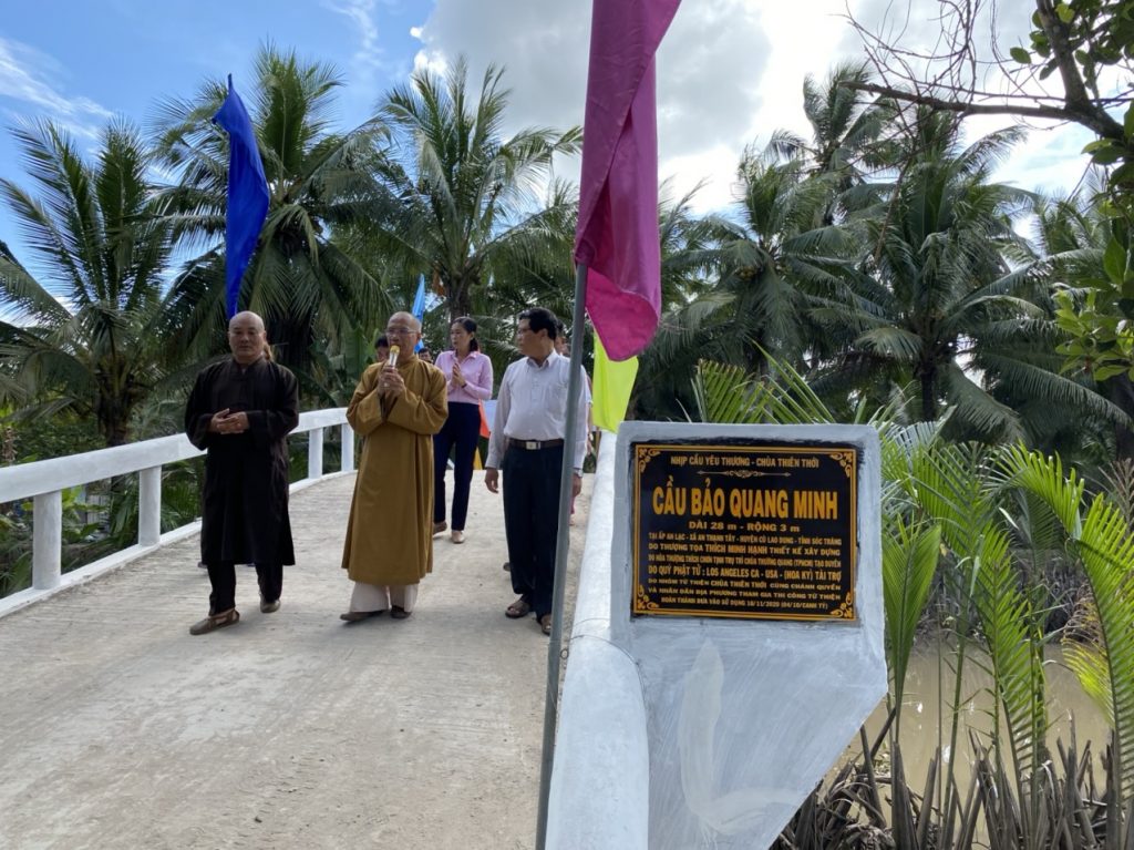 Cầu Bảo Quang Minh được kết cấu bằng bê tông cốt sắt, dài 28 mét, ngang 3 mét tọa lạc tại ấp An Lạc, xã An Thạnh Tây, huyện Cù Lao Dung, tỉnh Sóc Trăng. Cầu do HT.Thích Chơn Tịnh vận động quý Phật tử hảo tâm tài trợ kinh phí vật tư, nhóm từ thiện chùa Thiên Thới và nhân dân ấp An Lạc đồng thi công xây dựng bằng tâm thiện nguyện. TT.Thích Minh Hạnh là người thiết kế kỷ thuật và chỉ đạo thực hiện, tổng vốn đầu tư cho cầu Bảo Quang Minh là 200 triệu đồng.