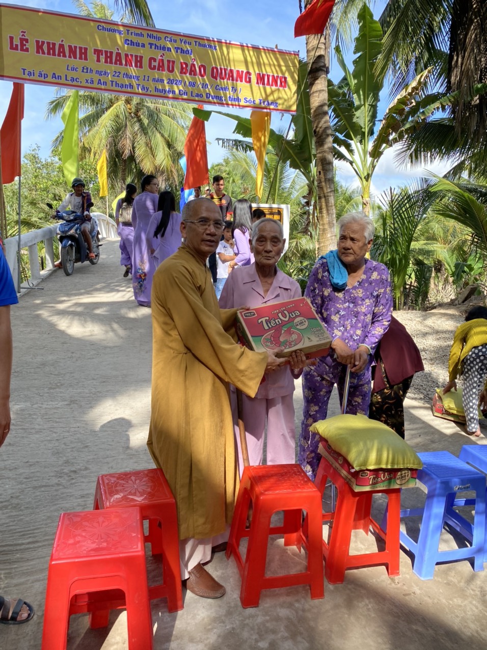 Cũng trong dịp khánh thành cầu Bảo Quang Minh, HT.Thích Chơn Tịnh và quý Phật tử tài trợ dành tặng bà con nghèo 70 phần quà trị giá 20 triệu đồng.