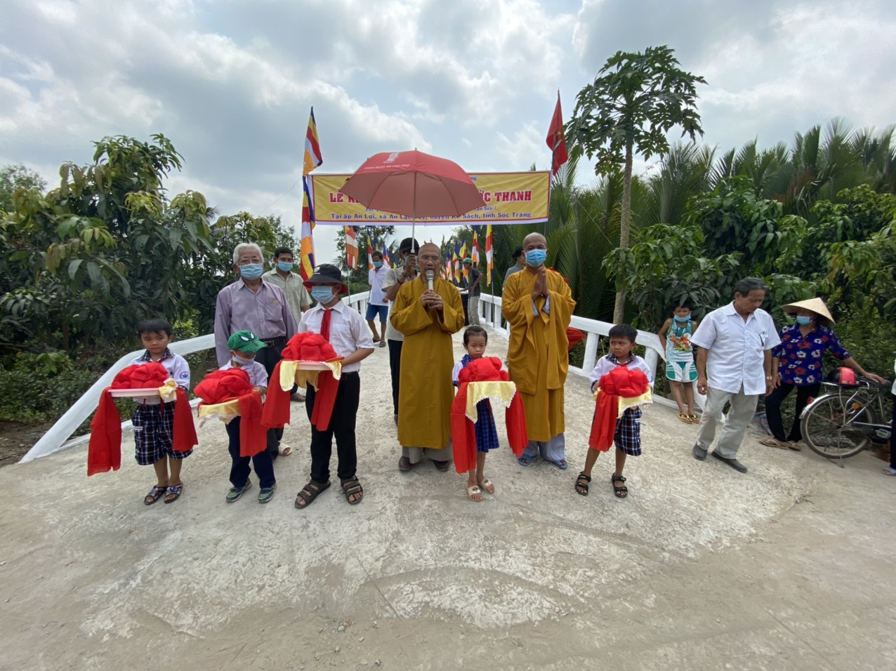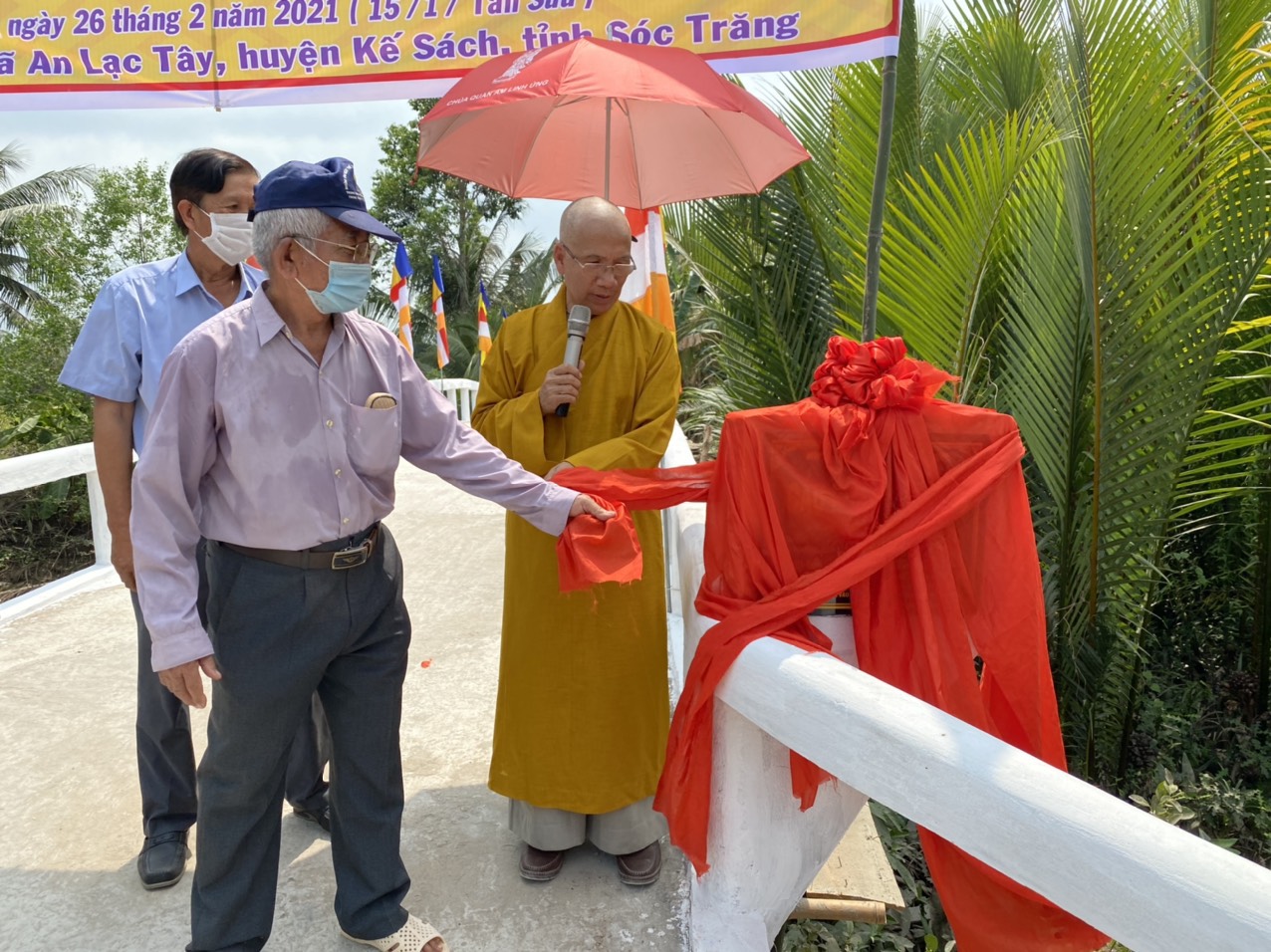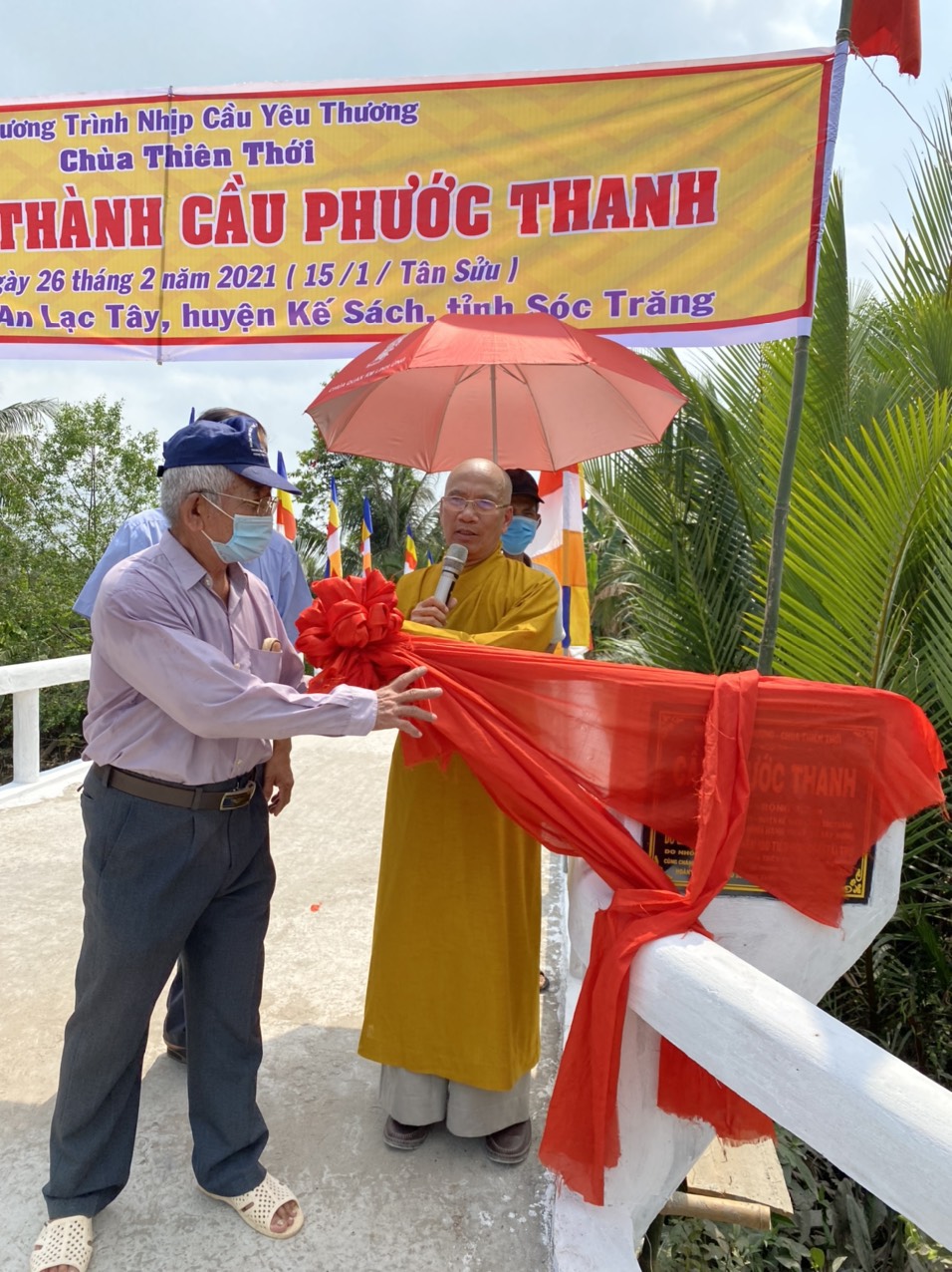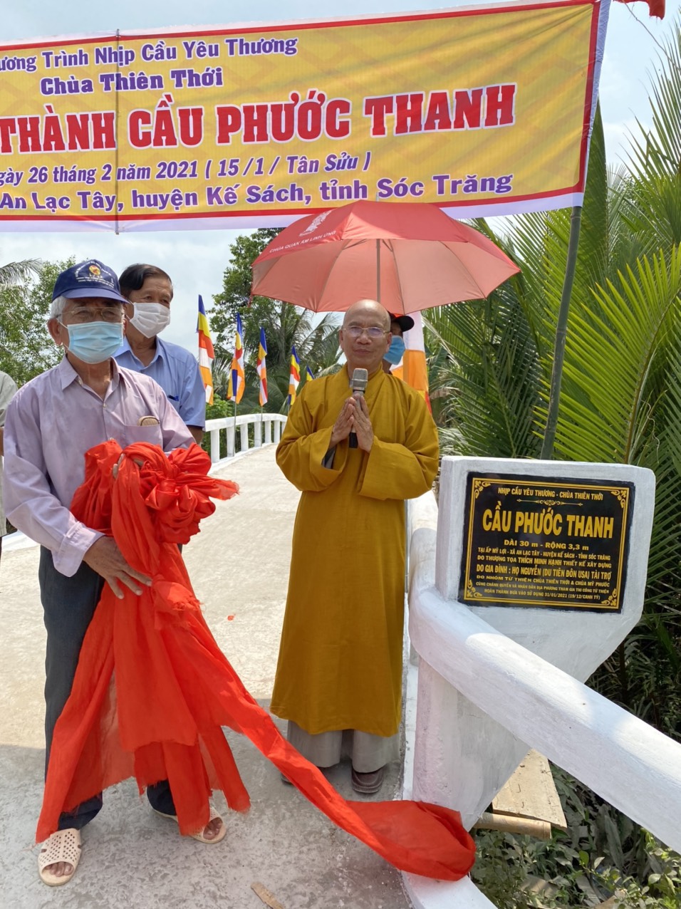 PSO - Chiều ngày 26/02/2021 (nhằm ngày 15 tháng Giêng năm Tân Sửu) được sự tài trợ của gia đình họ Nguyễn, đại diện là Du Tiên Đôn hiện định cư ở Hoa Kỳ, HT.Thích Minh Hạnh - Ủy viên HĐTS, Phó trưởng Ban Thường trực BTS GHPGVN tỉnh Sóc Trăng, Trụ trì chùa Thiên Thới (xã Thới An Hội, huyện Kế Sách, tỉnh Sóc Trăng) đã phối hợp với chính quyền địa phương tổ chức cắt băng khánh thành cầu Phước Thanh; đồng thời tặng quà cho bà con nghèo với tổng giá trị 260 triệu đồng.