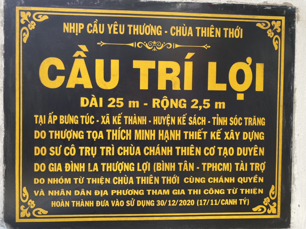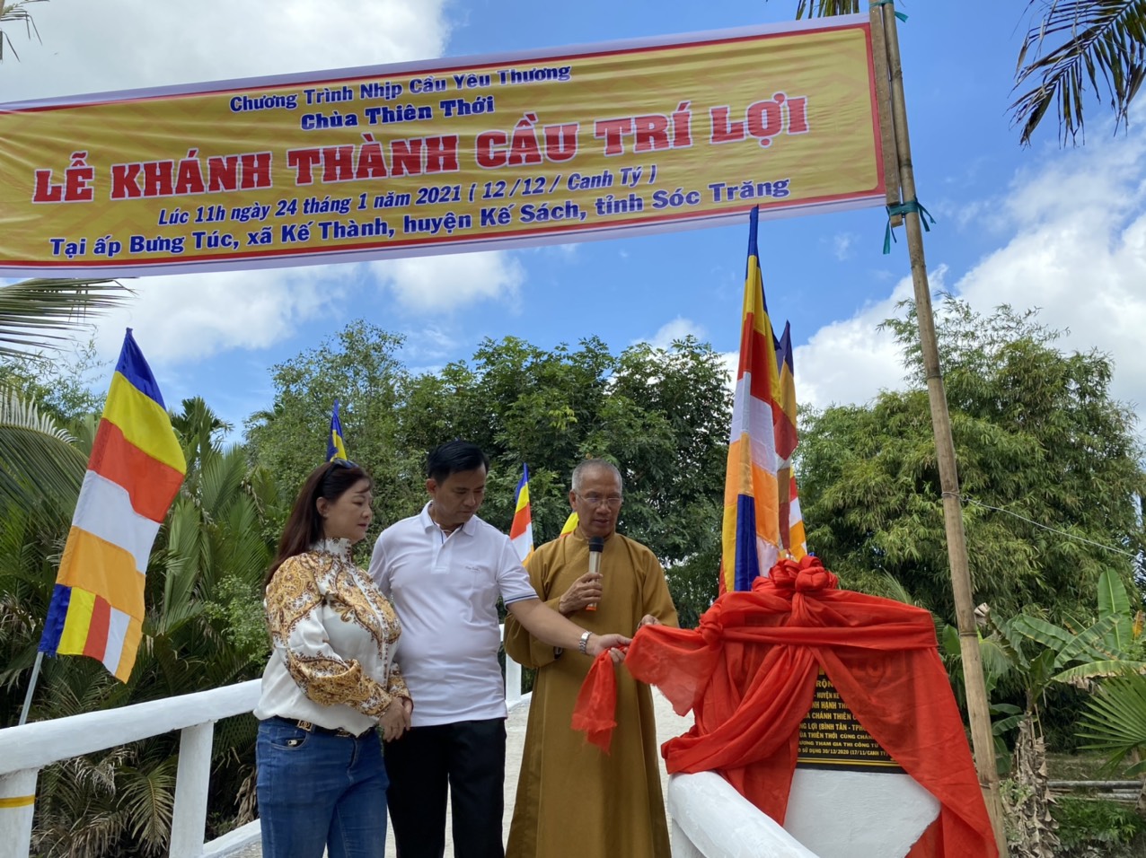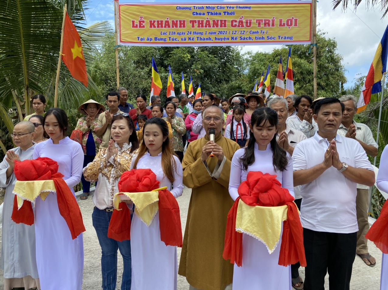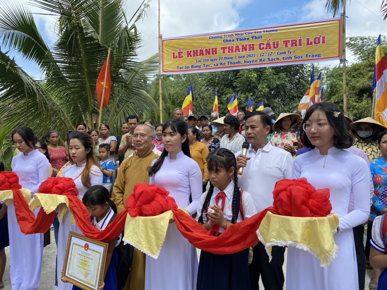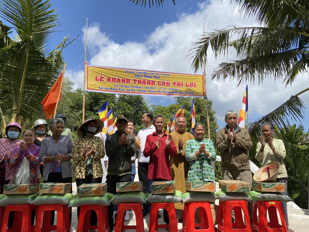 PSO - Trưa ngày 24/01/2021 (nhằm ngày 12/12 năm Canh Tý) Hòa thượng Thích Minh Hạnh - Ủy viên HĐTS, Phó trưởng Ban Thường trực BTS GHPGVN tỉnh Sóc Trăng, Trụ trì chùa Thiên Thới, người sáng lập "Nhịp cầu Yêu thương" phối hợp cùng chính quyền các cấp và nhà tài trợ long trọng tổ chức cắt băng khánh thành cầu Trí Lợi; đồng thời trao tặng 100 phần quà cho người nghèo nhân dịp đón xuân Tân Sửu 2021.