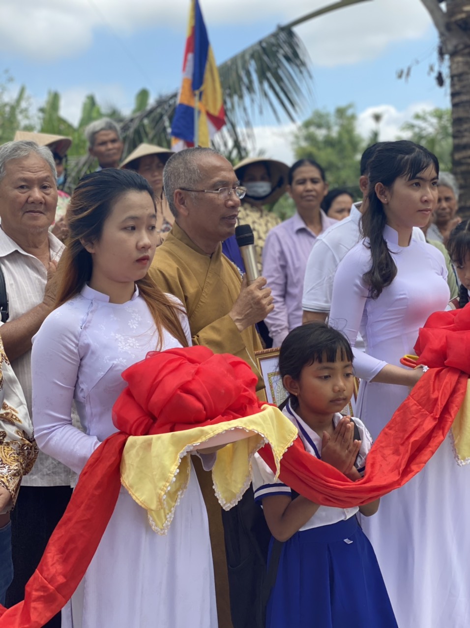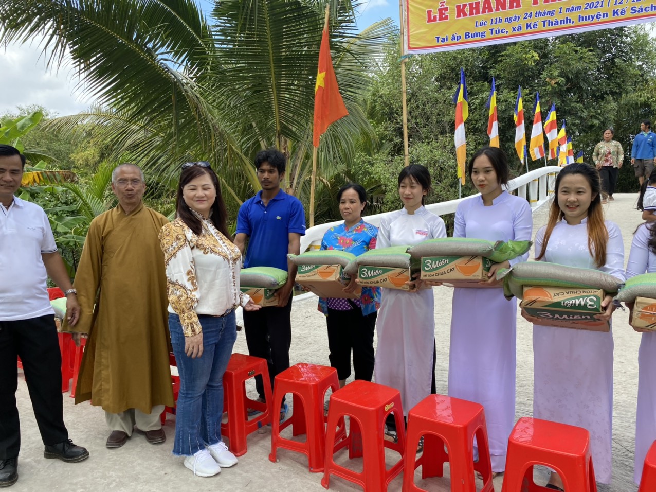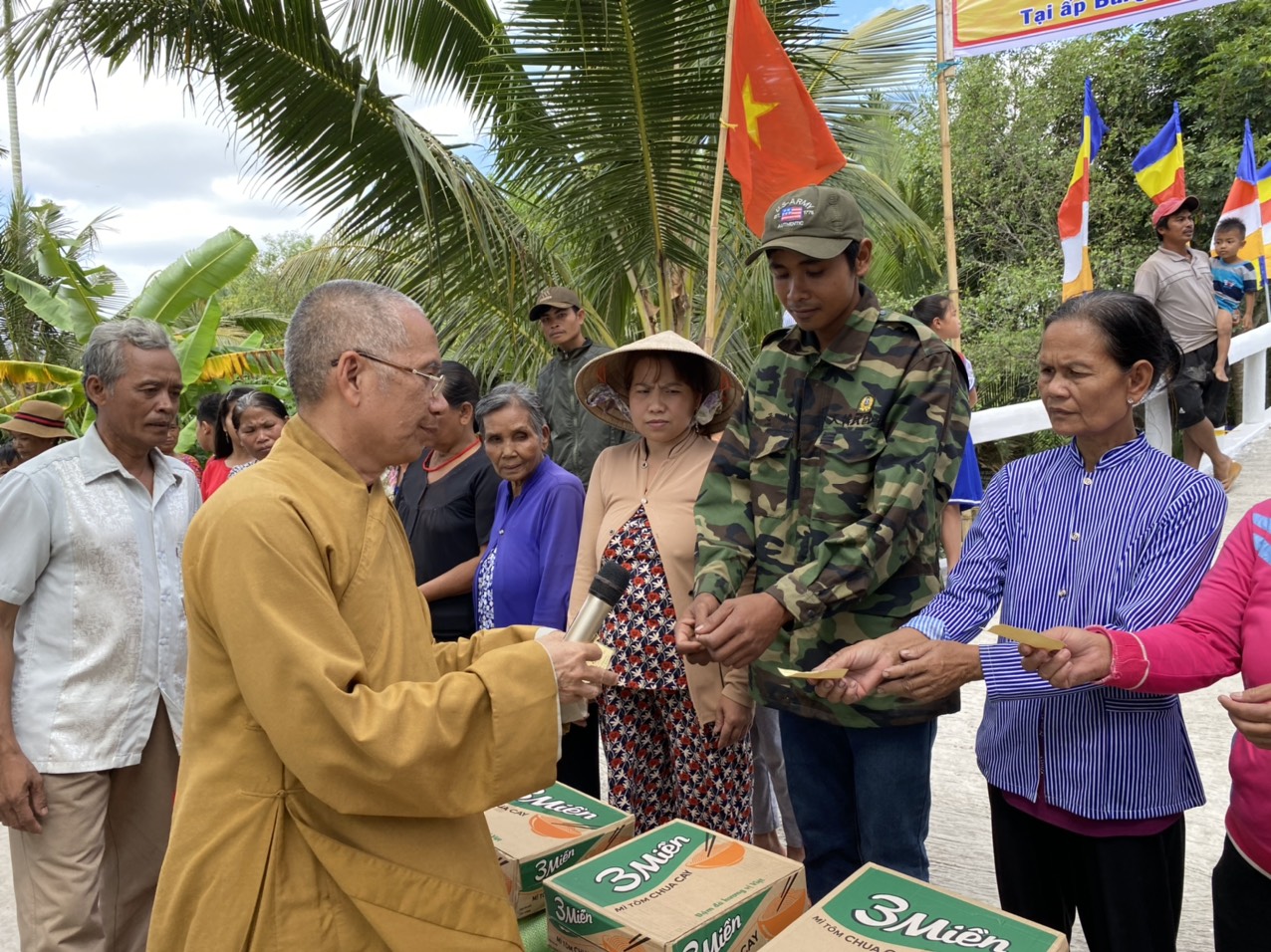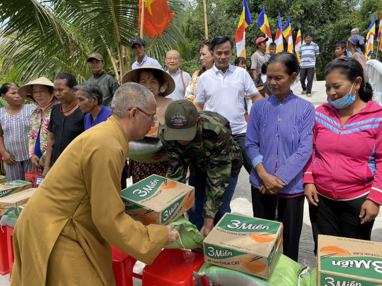 Tại lễ khánh thành, theo sự hướng dẫn của HT.Thích Minh Hạnh, gia đình nhà tài trợ dành tặng bà con tại điểm cầu 100 phần quà, mỗi phần 200 ngàn đồng. Đây là tấm lòng san sẽ yêu thương, gửi đến những gia đình có hoàn cảnh khó khăn khi ngày tết cổ truyền sắp đến.