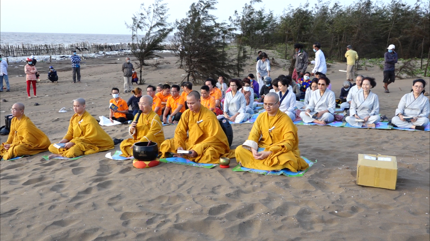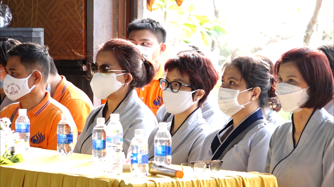 Mở đầu buổi lễ, toàn thể hội chúng cùng nhau tụng kinh nguyện cầu cho quốc thới dân an, dịch bệnh tiêu trừ.