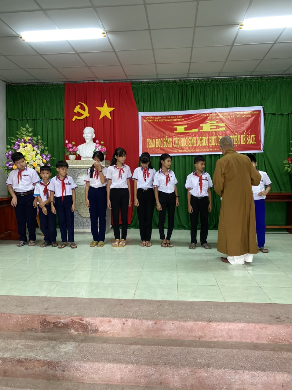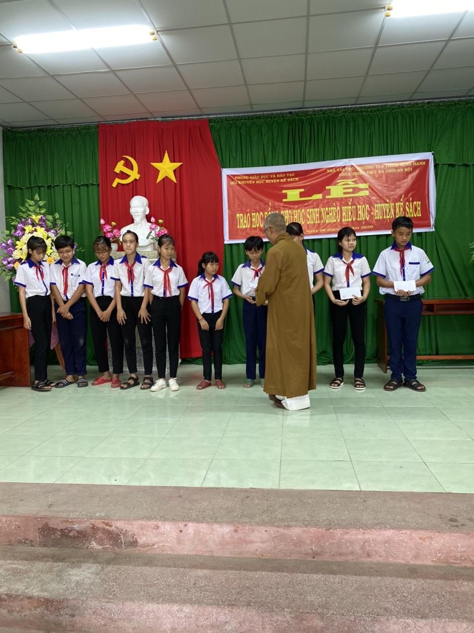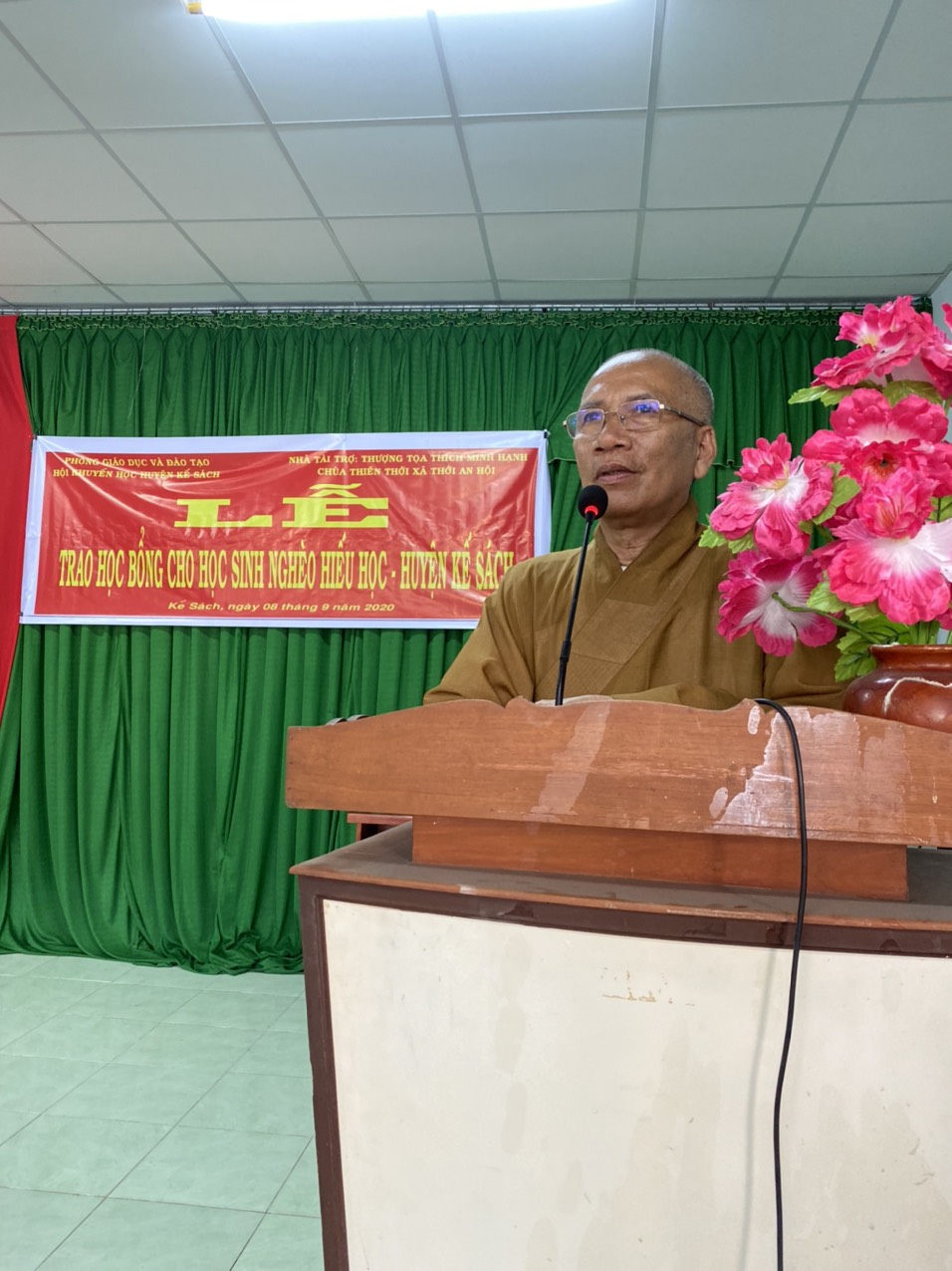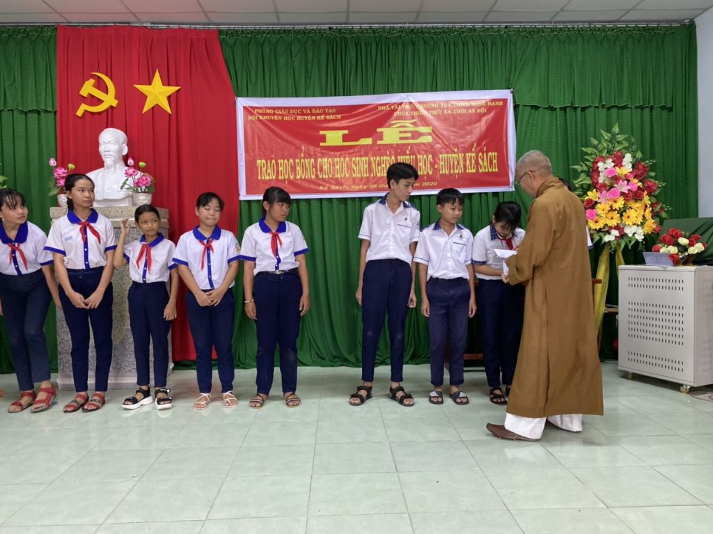 PSO - Sáng ngày 08/09/2020 tại Hội trường UBND xã Thới An Hội, Thượng tọa Thích Minh Hạnh - Ủy viên HĐTS, Phó trưởng Ban Thường trực BTS GHPGVN tỉnh Sóc Trăng, Trụ trì chùa Thiên Thới (xã Thới An Hội, huyện Kế Sách) kết hợp cùng Hội khuyến học huyện tổ chức trao tặng 100 phần học bổng cho các em học sinh nghèo học giỏi tại 9 điểm trường Trung học cơ sở nhân dịp mở đầu năm học mới.