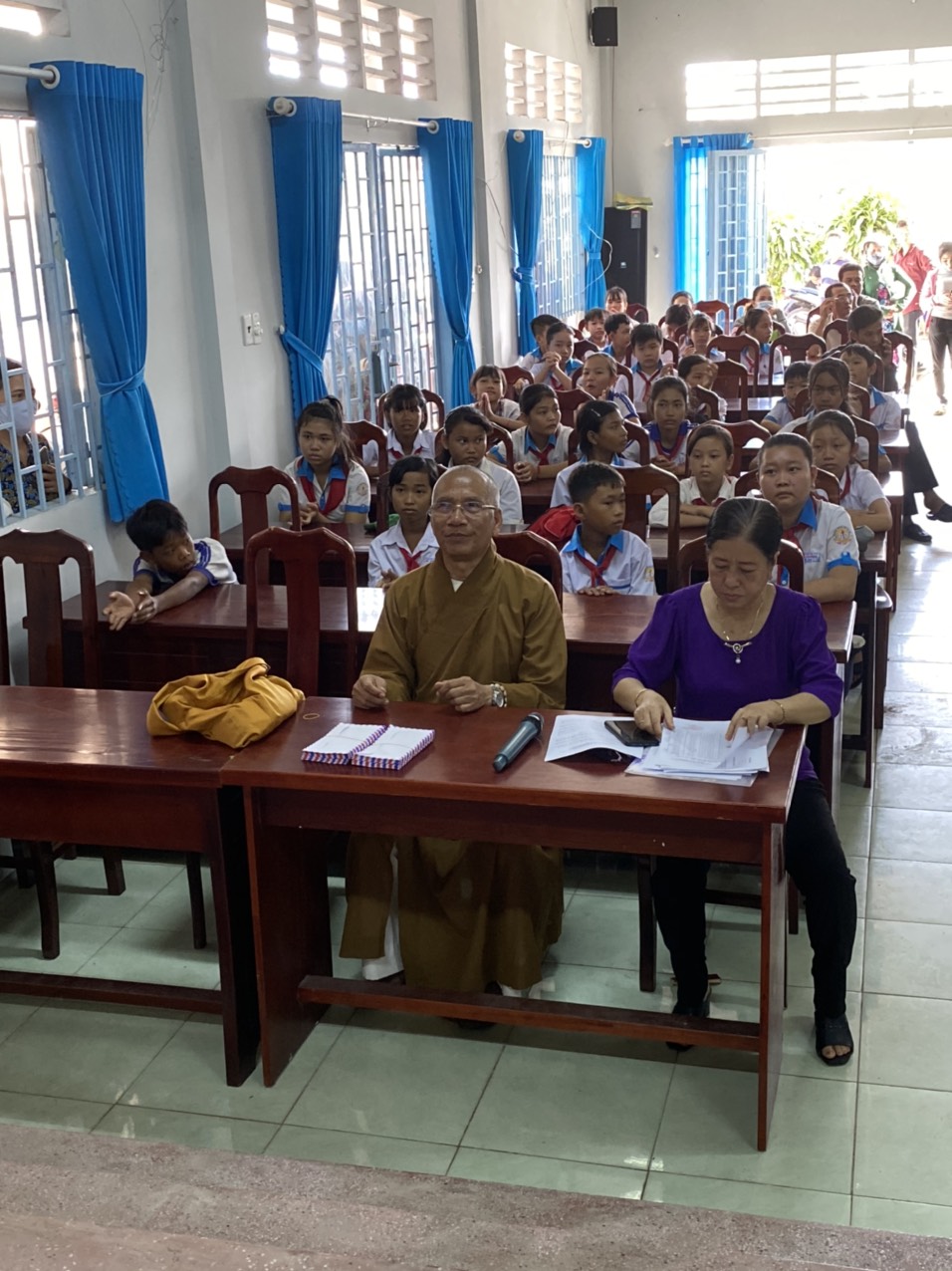 TT.Thích Minh Hạnh phát biểu: năm nay khai giảng năm học mới vào mùa Vu lan Báo hiếu, với tấm lòng thành chung tay xây dựng nền giáo dục nước nhà nói chung, tỉnh Sóc Trăng nói riêng, nhà tài trợ là Công ty bánh Pía Tân Huê Viên rất tâm huyết và lo lắng cho các em học sinh nghèo. Vì thế mong rằng các cháu sẽ hiểu sự chia sẻ này mà cố gắng chăm ngoan, hiếu thảo và học giỏi để không phụ lòng nhà tài trợ, thầy cô giáo, cha mẹ đã quan tâm.