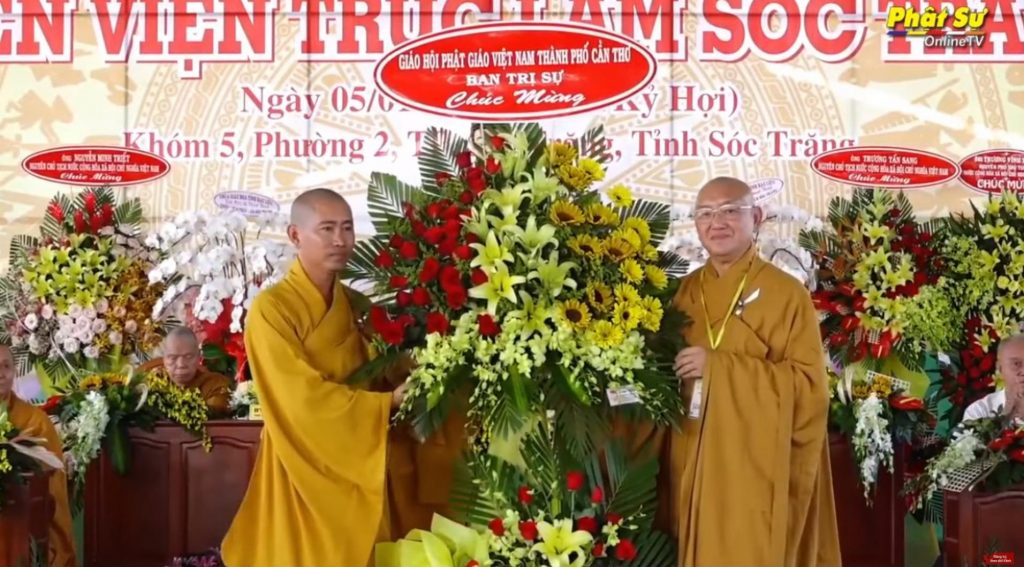 Tiếp theo là tặng hoa chúc mừng tại đại lễ khánh thành vinh dự được đón nhận lẵng hoa của Ngài Nguyễn Minh Triết và ngài Trương Tấn Sang nguyên Ủy viên bộ Chính trị, Nguyên Chủ tịch nước CHXHCNVN cũng như các lẵng hoa chúc mừng của lãnh đạo chính quyền các cấp từ T.Ư đến địa phương và chư Tôn đức các tỉnh thành cũng được gửi đến chúc mừng đại lễ.