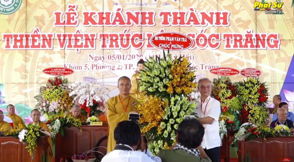 Đại tướng Phạm Văn Trà cũng đã có đôi lời phát biểu tại buổi lễ: Việt Nam đã trải dài hơn 2000 năm Lịch sử, Phật giáo Việt Nam cũng gắn liền với dòng thời gian đó, đặt biệt vào thời Trần đức vua Trần Nhân Tông đã nhiều lần đánh đuổi giặc ngoại xâm giữ gìn bờ cõi quê hương tổ quốc đồng thời cũng là người đã sáng lập ra Thiền phái Trúc Lâm, nốii mạch dòng thời gian đó đại tướng cũng đã nêu lên tầm quan trọng của HT. Thích Thanh Tứ người đã có công khôi phục lại Thiền phái Trúc Lâm do Phật Hoàng Trần Nhân Tông để lại cũng như sự đóng góp của nhà nước các cấp các nhà hảo tâm đã chung tay xây dựng lại Thiền Phái và ngày hôm nay sau 2 năm kể từ ngày khởi công xây dựng Thiền Phái Trúc Lâm Sóc Trăng đã được hình thành tại vùng đồng bằng Sông Cửu Long.