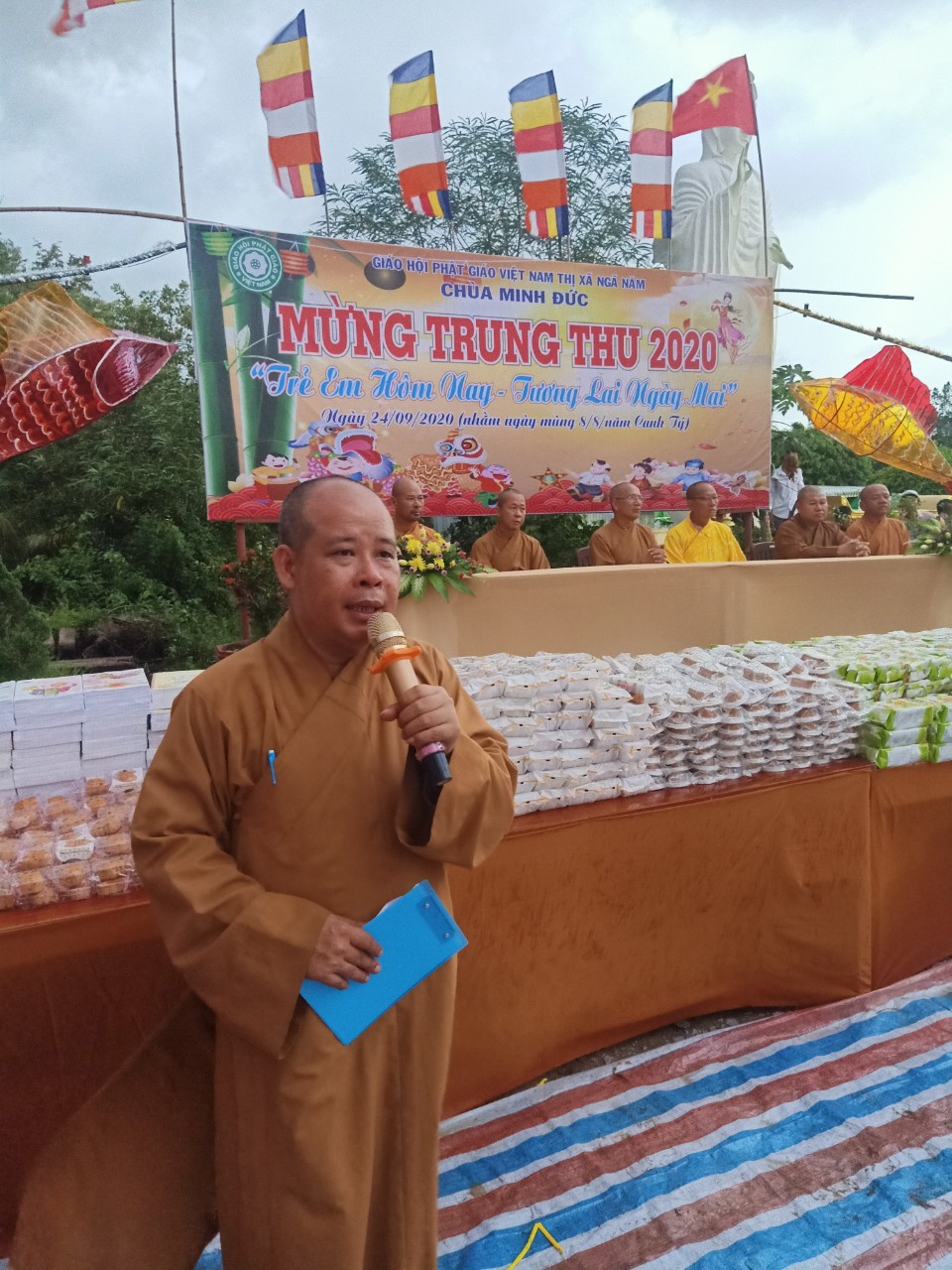 Đại đức Thích Tâm Thành - Phó chánh văn phòng BTS tỉnh, Phó trưởng ban Thường trực BTS Phật giáo TX.Ngã Năm, Trụ trì chùa Minh ĐứcĐĐ.Thích Tâm Thành phát biểu; cảm ơn Phật tử Thiên Hương (Trần Thị Kim Ngân) cùng chồng là Thái Minh Đức - Giám đốc Công ty Nông sản Minh Đức và quý Phật tử hảo tâm khác đã nhiệt tình ủng hộ cho chùa tổ chức thành công đêm Trung Thu cho trẻ em nghèo tại địa phương. Đây là việc làm thiện nguyện thể hiện tâm từ bi của người đệ tử Phật. Kính cầu nguyện chư Phật gia hộ tất cả mọi người luôn bình an, may mắn, vạn sự kiết tường như ý.