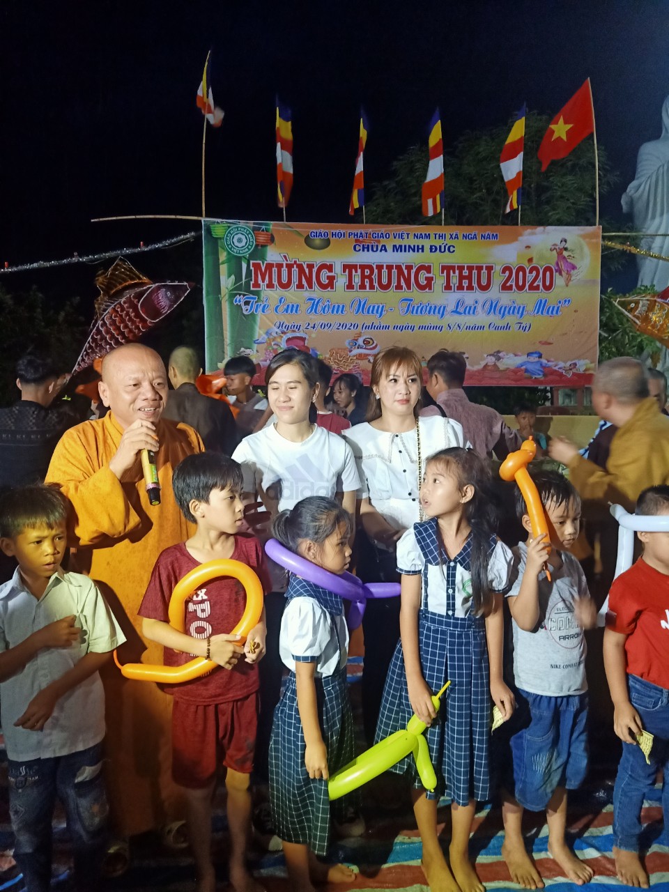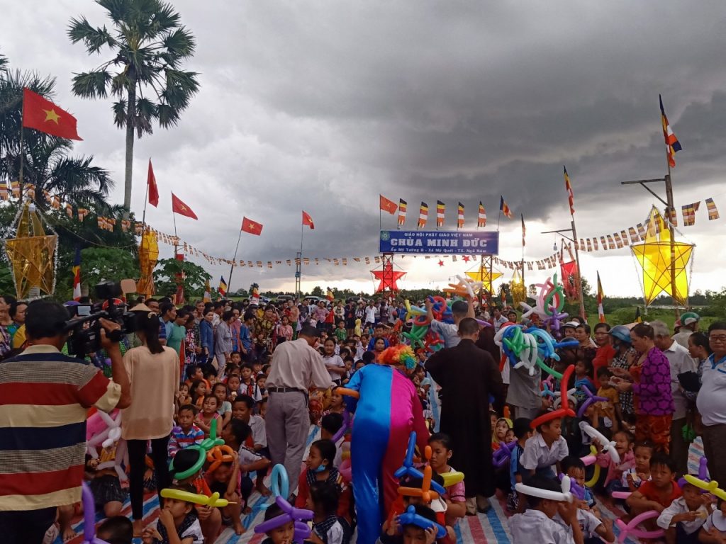 PSO - Chiều tối ngày 24/09/2020 (nhằm ngày 8/8 năm Canh Tý) Đại đức Thích Tâm Thành - Phó chánh Văn phòng BTS GHPGVN tỉnh Sóc Trăng, Phó trưởng ban Thường trực BTS Phật giáo TX.Ngã Năm, Trụ trì chùa Minh Đức (xã Mỹ Quới, TX.Ngã Năm, tỉnh Sóc Trăng) kết hợp cùng Công ty Nông sản Minh Đức (khu công nghiệp An Nghiệp, TP.Sóc Trăng) và quý Phật tử hảo tâm long trọng tổ chức đêm Trung Thu, trao tặng 300 phần quà cho trẻ em nghèo tại 2 xã Mỹ Quới và Mỹ Bình trị giá gần 100 triệu đồng.