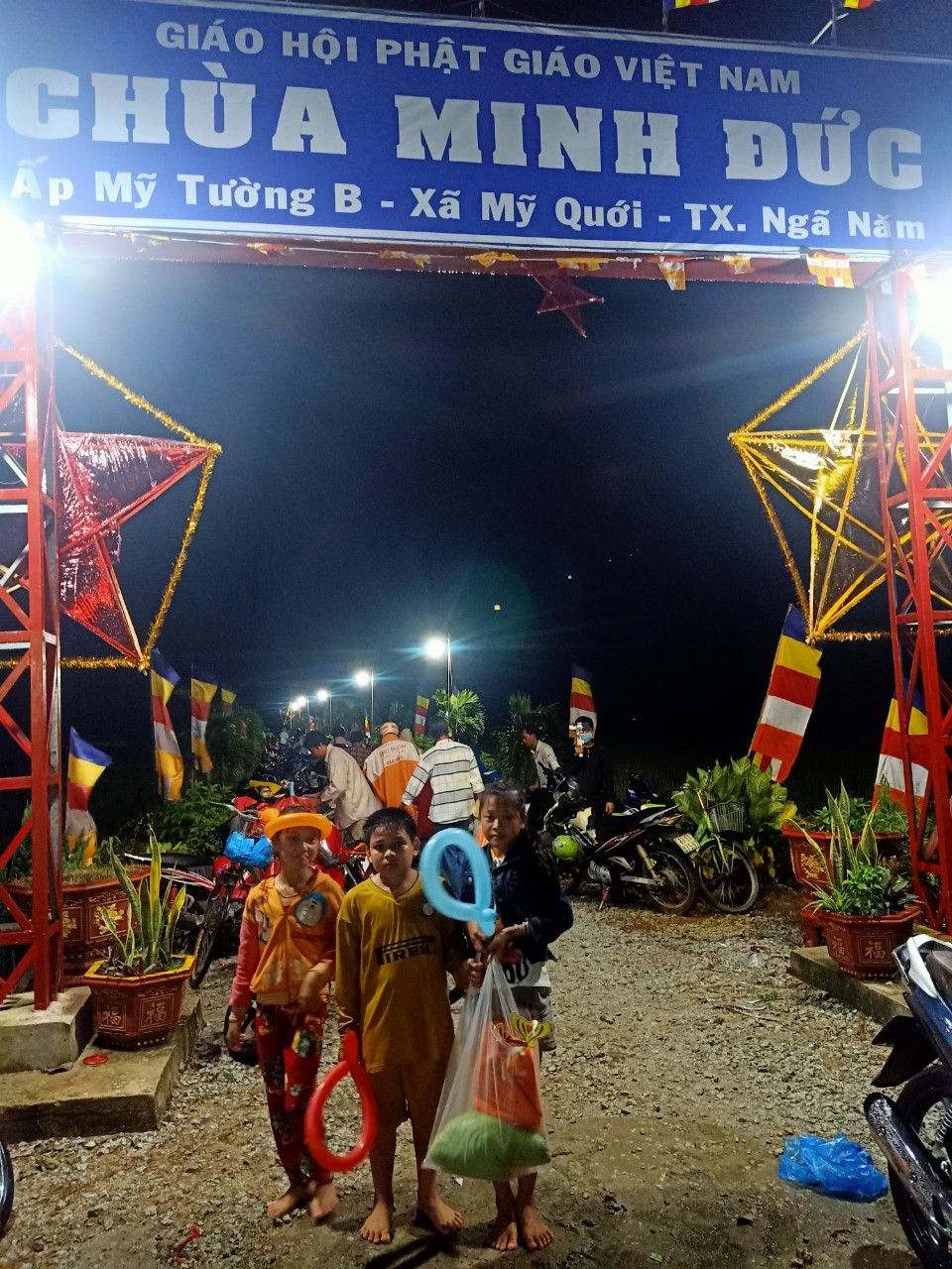 Chùa Minh Đức tọa lạc tại ấp Mỹ Tường B, xã Mỹ Quới là xã vùng xa cách TX.Ngã Năm 25km, cách trung tâm tỉnh Sóc Trăng 57km về hướng Bạc Liêu. Đời sống người dân nơi đây chủ yếu là làm ruộng, vất vả quanh năm. Trẻ em vì thế cũng thiếu thốn nhiều thứ, rất cần sự quan tâm chăm sóc của mọi người. Nhằm tạo cho các em có cái tết Trung Thu đầm ấm và vui vẻ, tạo sân chơi cho các em giải trí sau những giờ học tập tại nhà trường. Chùa Minh Đức dù còn khó khăn nhiều mặt, nhưng Đại đức Trụ trì vẫn cố gắng vận động và được sự ủng hộ của Công ty Nông sản Minh Đức, các nhà hảo tâm, quý Phật tử xa gần hỗ trợ tổ chức đêm Trung Thu tại khuôn viên chùa với 300 em học sinh tiểu học tham dự. Các tiết mục vui chơi như chú hề hoạt náo vui nhộn, tặng bong bóng với đủ màu sắc. 300 phần quà cho các em, mỗi phần trị giá 300.000đ (gồm: 10kg gạo, 1 cây bánh pía, 1 bánh Trung Thu hình chú heo, 1 cây bánh in, 1 bánh hình chú Thỏ, 1 bánh mì ngọt, 4 cuốn tập, 4 cây viết và lồng đèn).