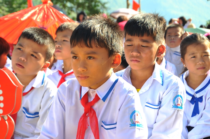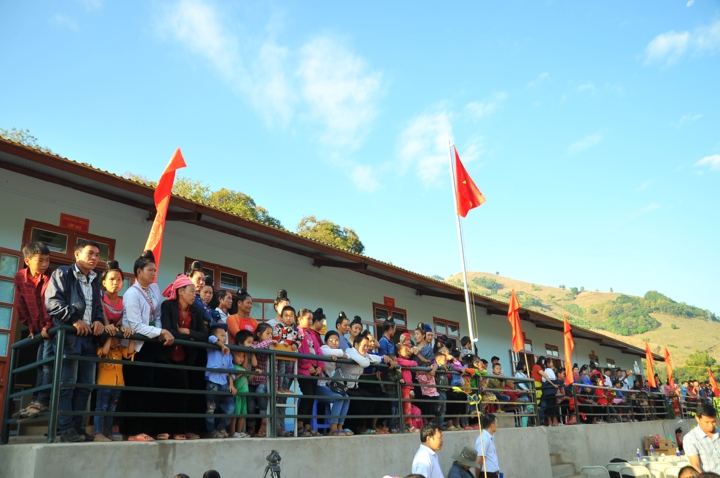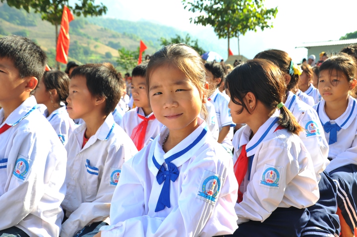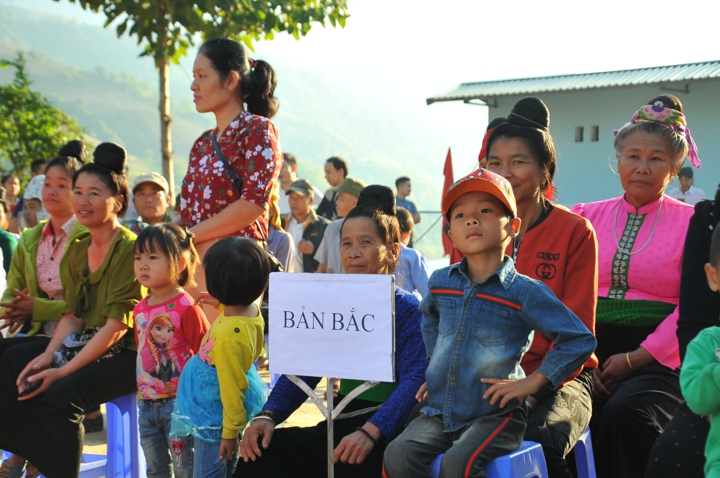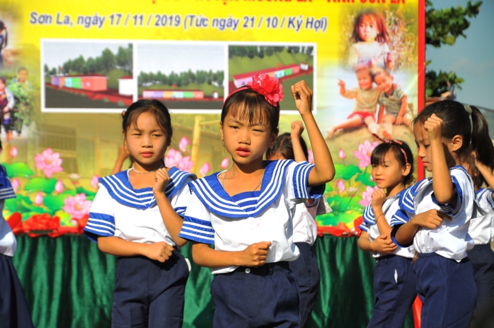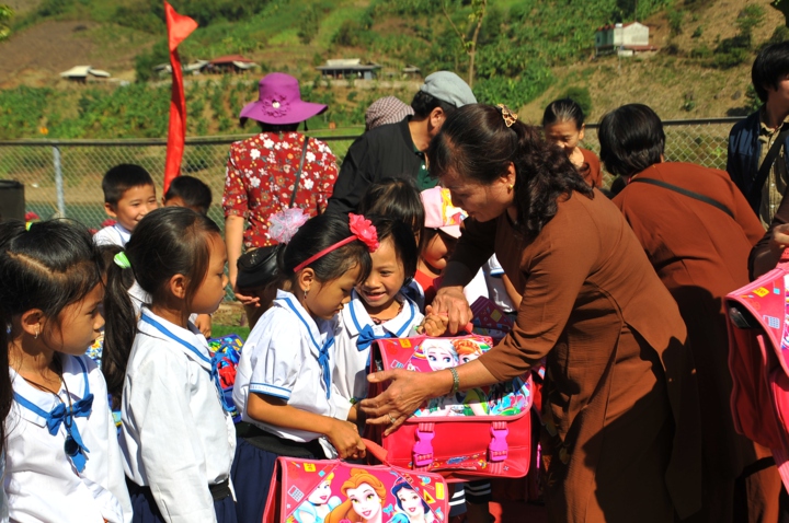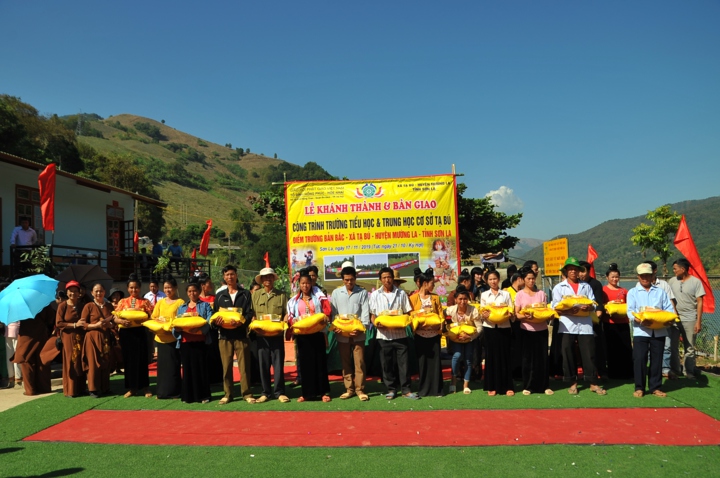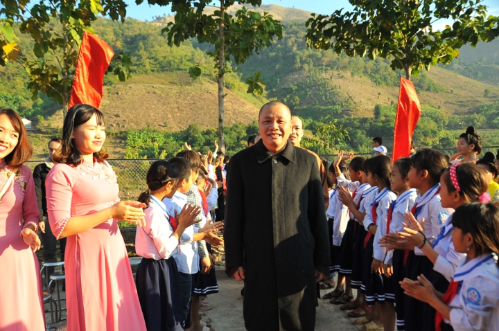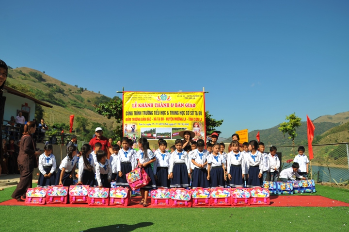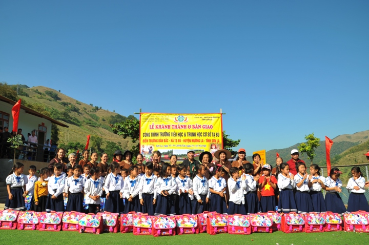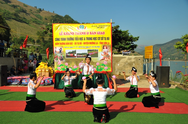 Bà Hoàng Thị Lợi hiệu trưởng Trường Tiểu Học và Trung Học Cơ Sở Tạ Bú phát biểu tại buổi lễ