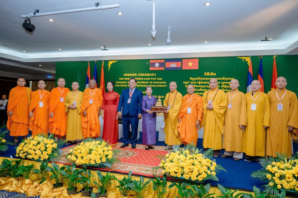 Việt Nam, Campuchia và Lào là ba quốc gia láng giềng, có mối quan hệ hữu nghị, truyền thống, đoàn kết, hợp tác phát triển từ lâu đời. Trong nền tảng mối quan hệ ấy, Phật giáo có vai trò hết sức quan trọng, vừa là sợi dây gắn kết tinh thần, vừa là cầu nối của hòa bình, hiểu biết và lòng từ bi giữa nhân dân ba nước. Phật giáo ở ba quốc gia chúng ta có nhiều điểm tương đồng, đều đề cao trí tuệ, hòa hợp, đều cùng chung lý tưởng vì con người, vì hòa bình và vì sự phát triển bền vững. Trải qua nhiều thế kỷ, với triết lý sâu sắc về thế giới quan, nhân sinh quan, Phật giáo đã hòa quyện vào đời sống văn hóa, trở thành một trong những điểm tựa tinh thần của nhân dân ba nước, nuôi dưỡng lòng nhân ái, hướng thiện và khát vọng sống bình an, hạnh phúc.
