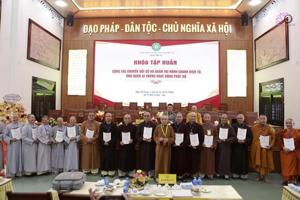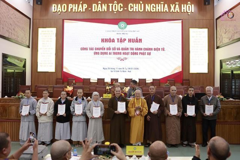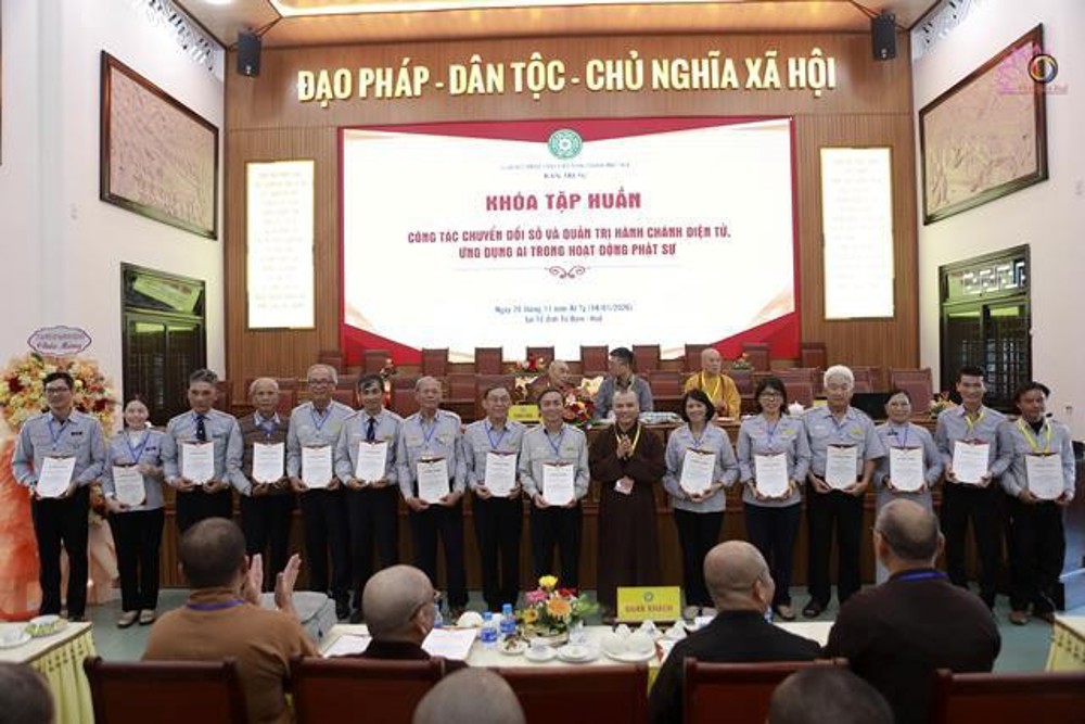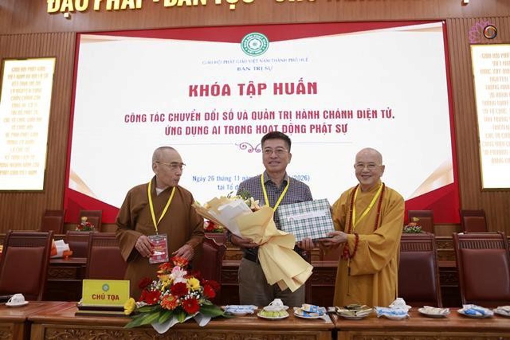 Sáng 14/1/2025 (26/11 năm Ất Tỵ), tại Giảng đường Từ Đàm (01 Sư Liễu Quán, phường Thuận Hóa, Huế), Ban Trị sự GHPGVN thành phố Huế đã tổ chức chương trình tập huấn công tác chuyển đổi số và quản lý hành chính điện tử, ứng dụng AI trong hoạt động Phật sự.