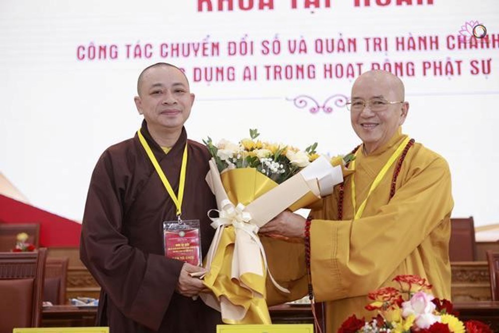 Tại khóa tập huấn, TT.Thích Minh Nhẫn, TT.Thích Nhật Từ, TT.Thích Quảng Tiến và TS.Nguyễn Quang Anh đã chia sẻ, trình bày các đề tài liên quan đến chuyển đổi số, quản lý hành chính điện tử, ứng dụng AI: Tổng quan Chuyển đổi số và Quản lý hành chính điện tử của GHPGVN, ứng dụng AI trong công tác quản trị hành chính Giáo hội và Hoằng pháp (TT.Thích Minh Nhẫn); Ứng dụng AI trong công tác soạn thảo văn bản hành chính và hoạt động Phật sự (TT.Thích Nhật Từ); Hướng dẫn sử dụng các công cụ AI (ChatGPT, Cavan, Gemini… và các công cụ khác), ứng dụng AI trong họp trực tuyến, Ghi biên bản tự động và tóm tắt nội dung bằng AI (TS.Nguyễn Quang Anh).