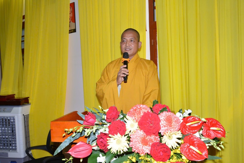 Đại đức Thích Huệ Chơn – Phó BTS GHPGVN tỉnh: điều phối chương trình và đã thay mặt Ban Tổ chức có lời phát biểu niệm ân Chư Tôn đức Tăng Ni và tri ân các cấp chính quyền, Phật tử đã quang lâm chùa Long Sơn chứng minh và tham dự.