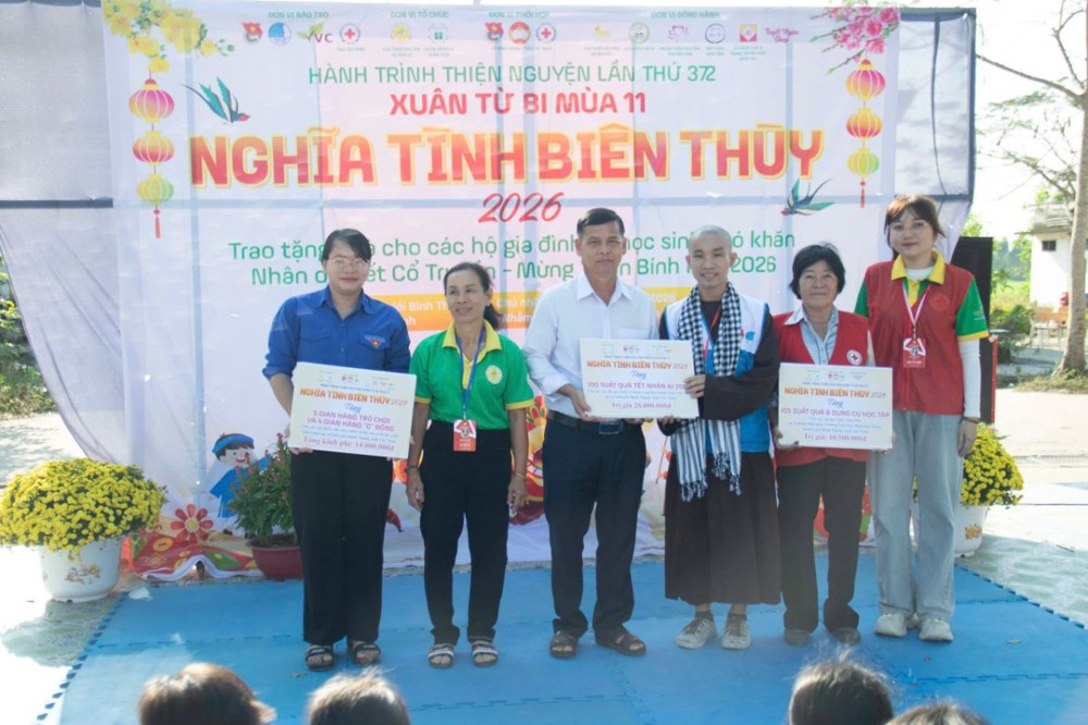 PSO – Sáng ngày 01/02/2026, Câu lạc bộ Thiện nguyện Cỏ Bốn Lá (thành viên Mạng lưới Tình nguyện Quốc gia khu vực miền Nam, trực thuộc Trung tâm Tình nguyện Quốc gia – Trung ương Đoàn TNCS Hồ Chí Minh) phối hợp cùng Ủy ban MTTQ Việt Nam xã Bình Thành, Đoàn TNCS Hồ Chí Minh xã Bình Thành và Ban Chấp hành Hội Chữ thập đỏ xã Bình Thành tổ chức chuỗi hoạt động “Xuân từ bi” mùa 11 với chủ đề “Nghĩa tình biên thùy” năm 2026 tại xã biên giới Bình Thành, tỉnh Tây Ninh.