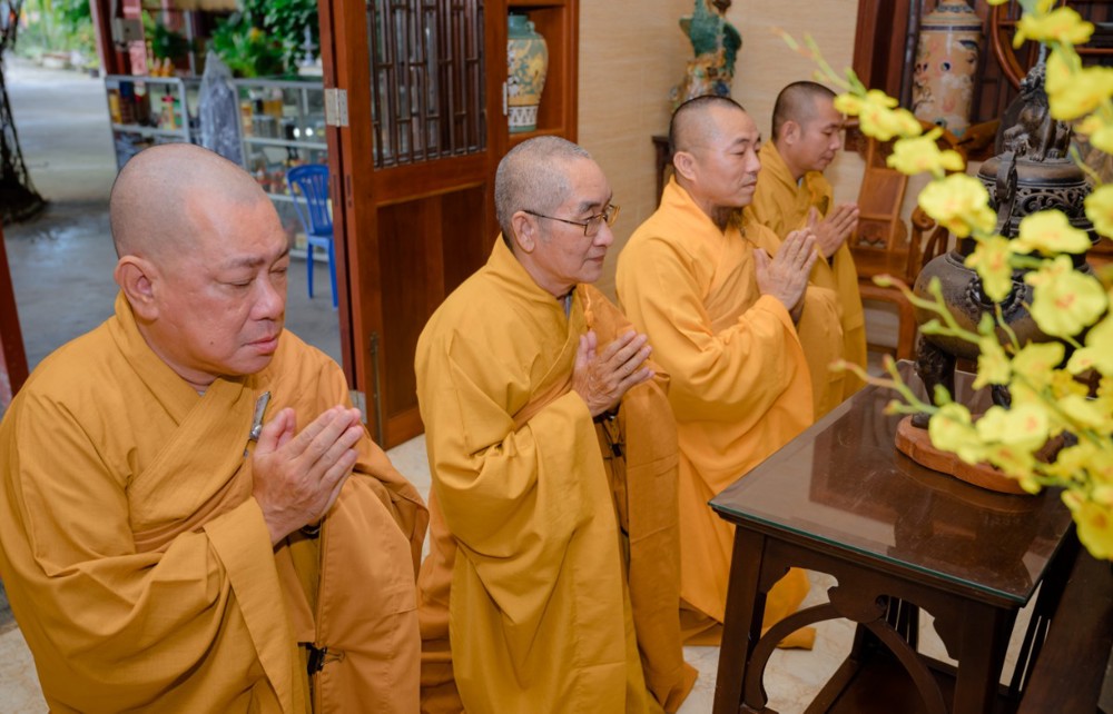 Sau đó chư Tôn đức giáo phẩm cùng môn đồ pháp quyến đã nhất tâm niệm Phật cầu nguyện Giác linh Hòa thượng cao đăng Phật quốc.
