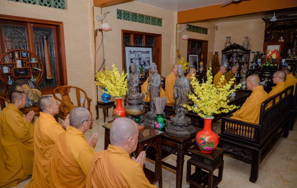 Trong không khí trang nghiêm, chư Tôn đức Giáo phẩm đã dâng hương tưởng niệm cố Hòa thượng Thích Thiện Chơn, thành kính tri ân, tưởng nhớ công đức Hòa thượng đã suốt đời phụng sự cống hiến cho đạo pháp, dân tộc, cho sự phát triển của Phật giáo TP.HCM, (Quận 8 cũ) và chùa Giác Linh.